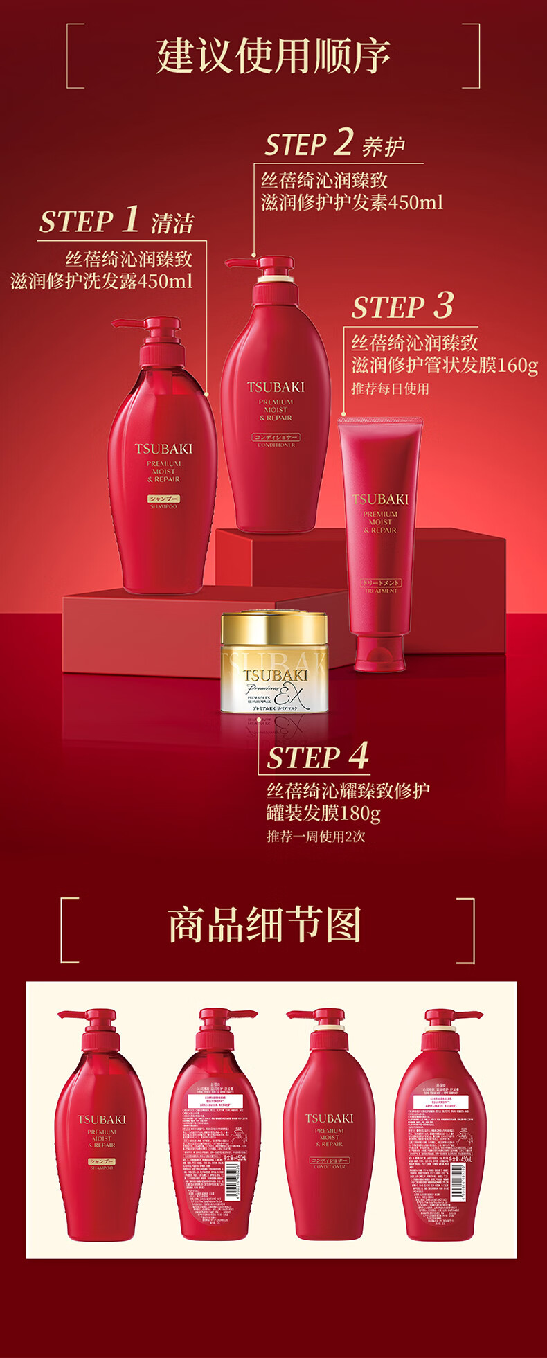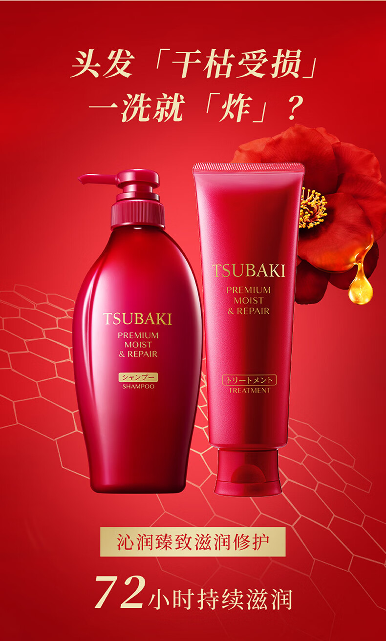 丝蓓绮(TSUBAKI)沁润臻致滋润修护洗发露450ml清洁洗发水改善干枯毛躁热门商品