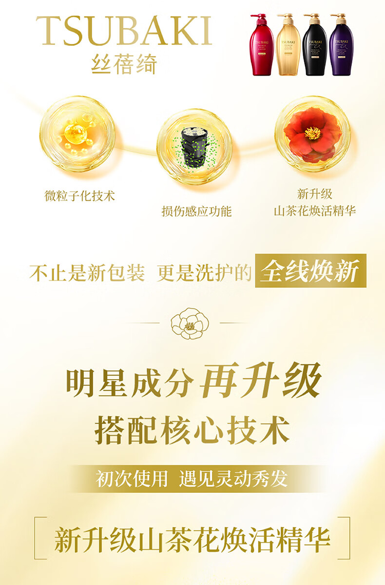 丝蓓绮(TSUBAKI)沁润臻致滋润修护洗发露450ml清洁洗发