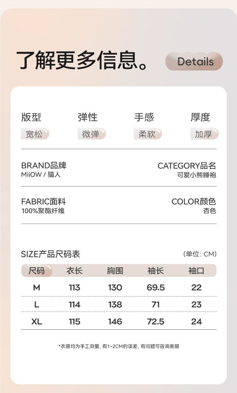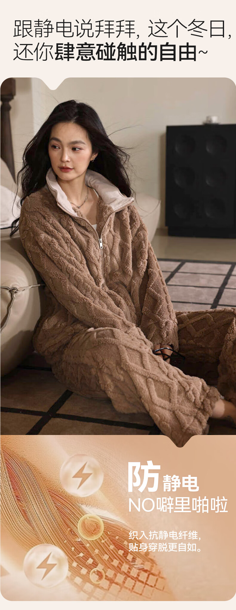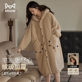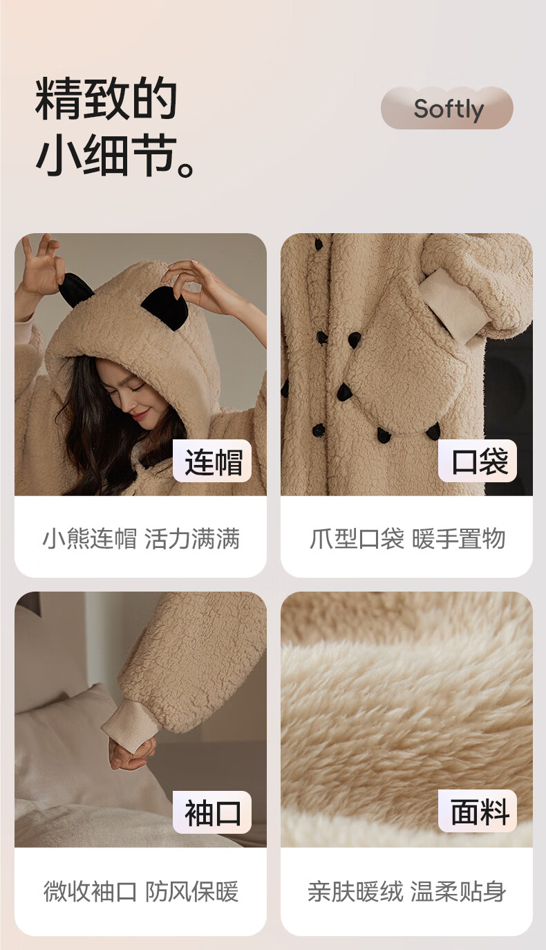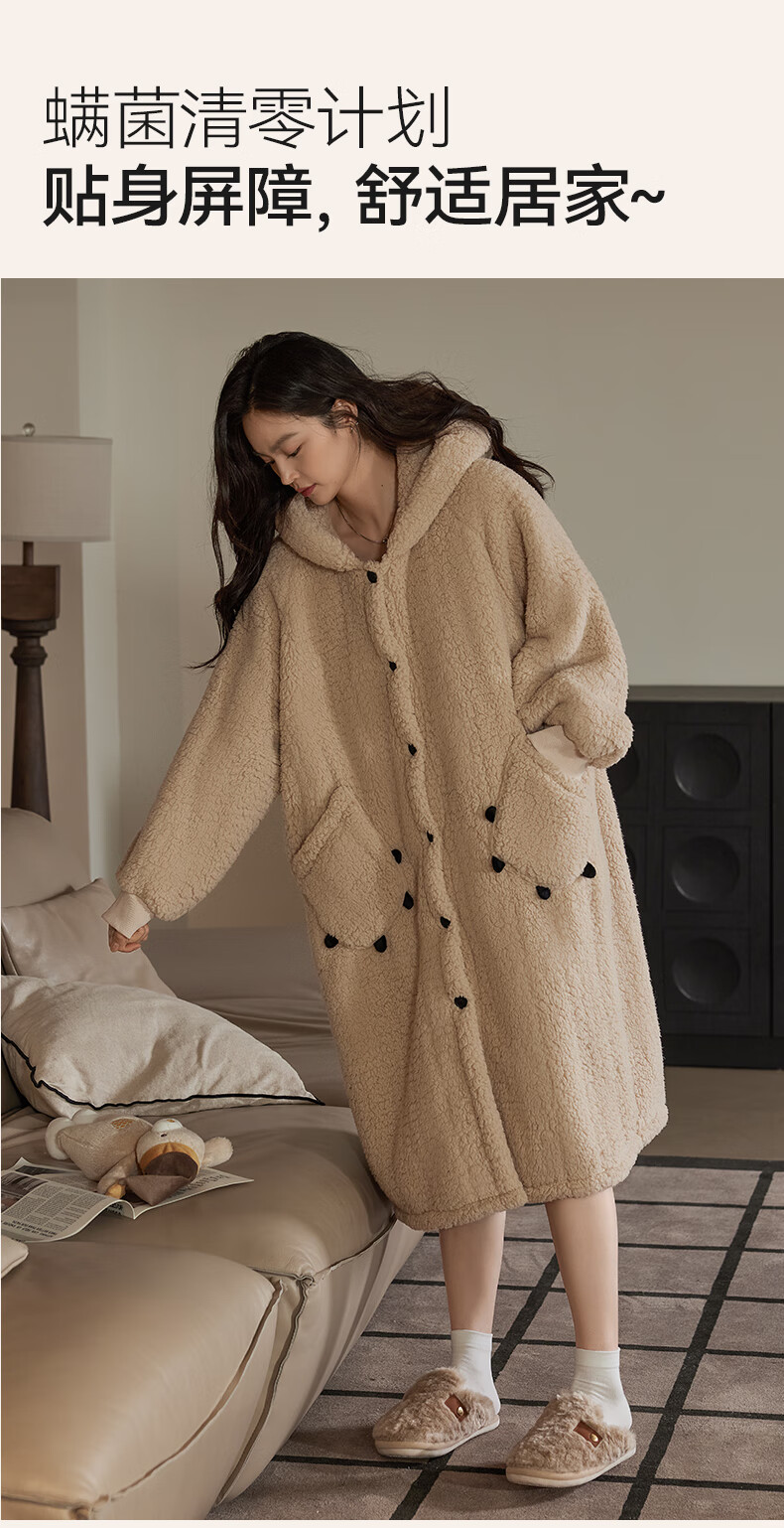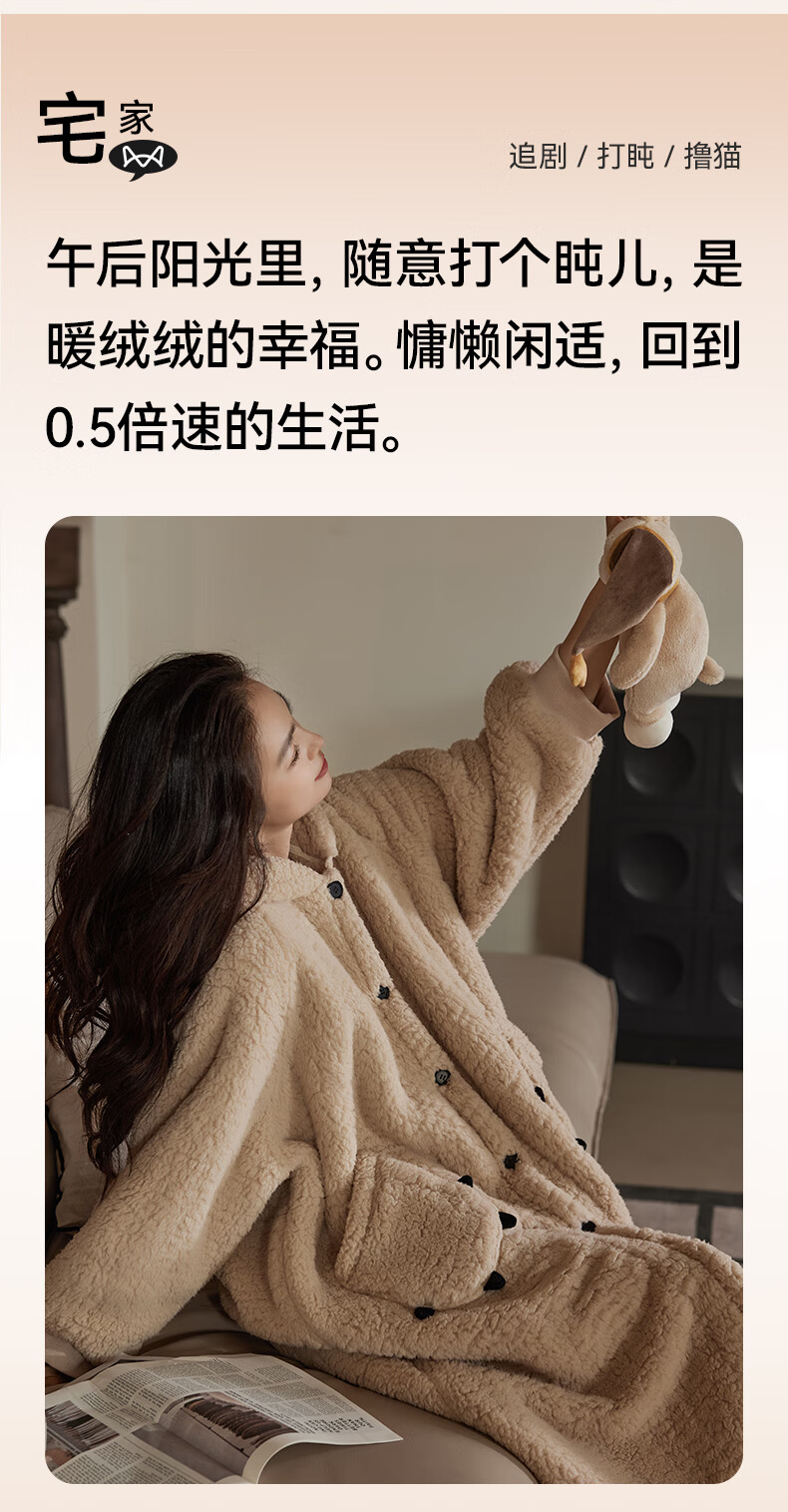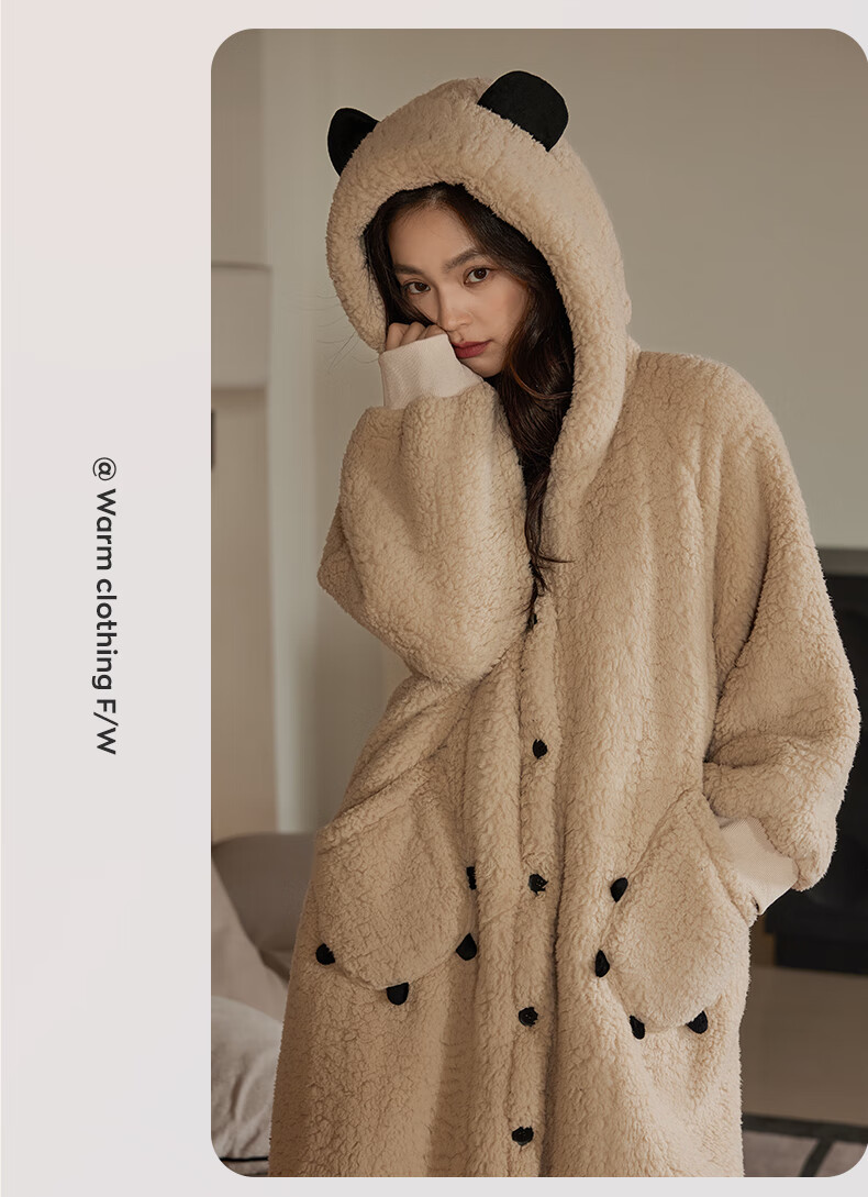 猫人小熊珊瑚绒睡袍女秋冬加绒加厚睡衣长袍可外穿可爱女士家居服套装