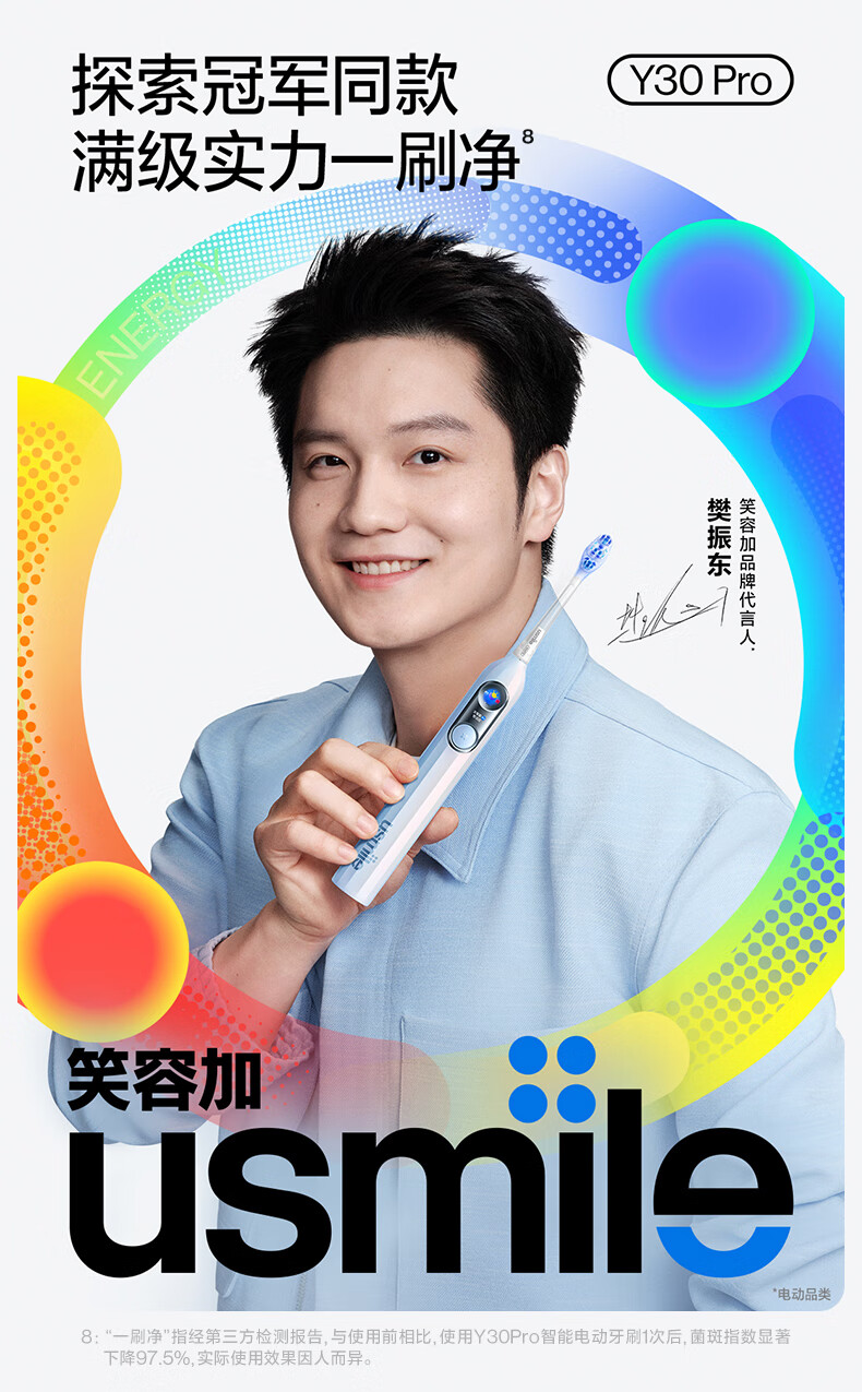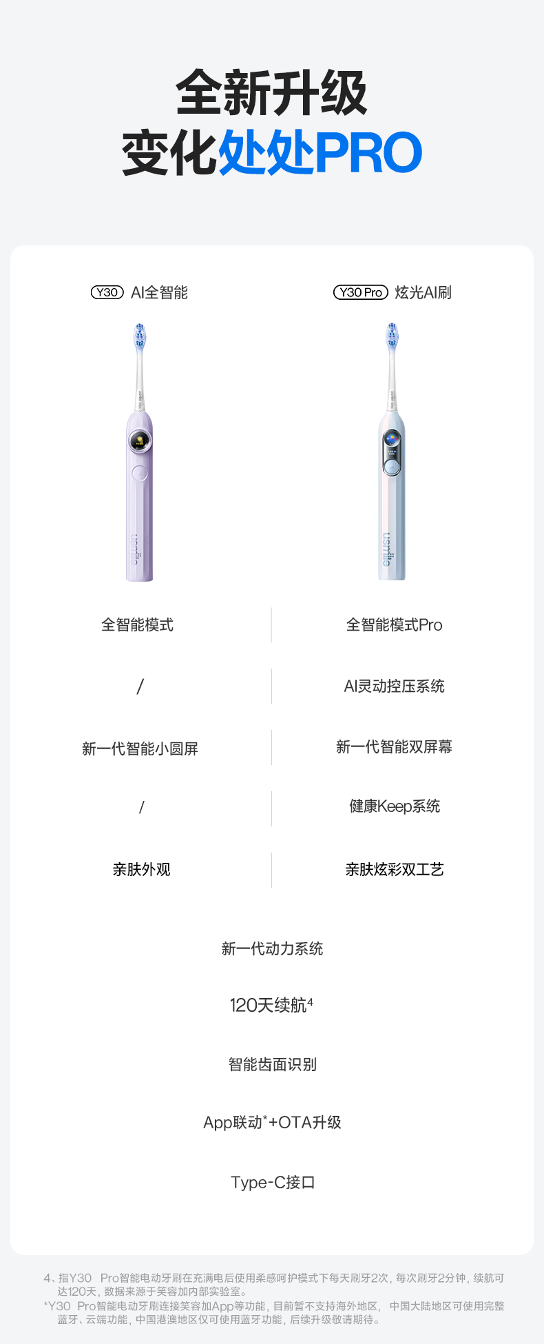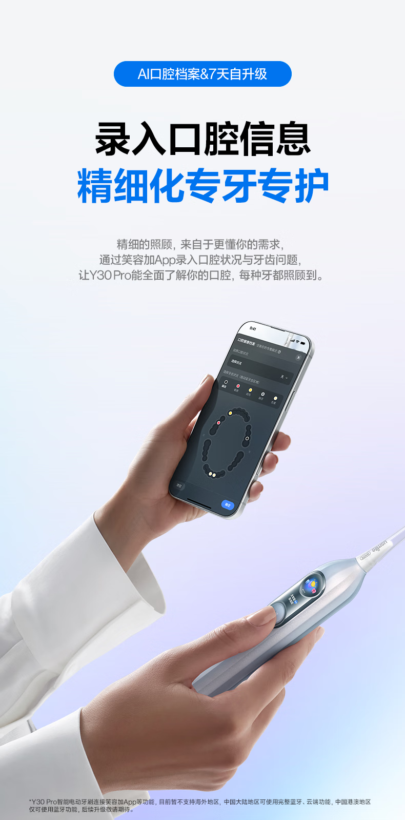 usmile笑容加智能电动牙刷 新动力大摆幅 全智能模式 Y30PRO 极光蓝 情侣送男女友礼物
