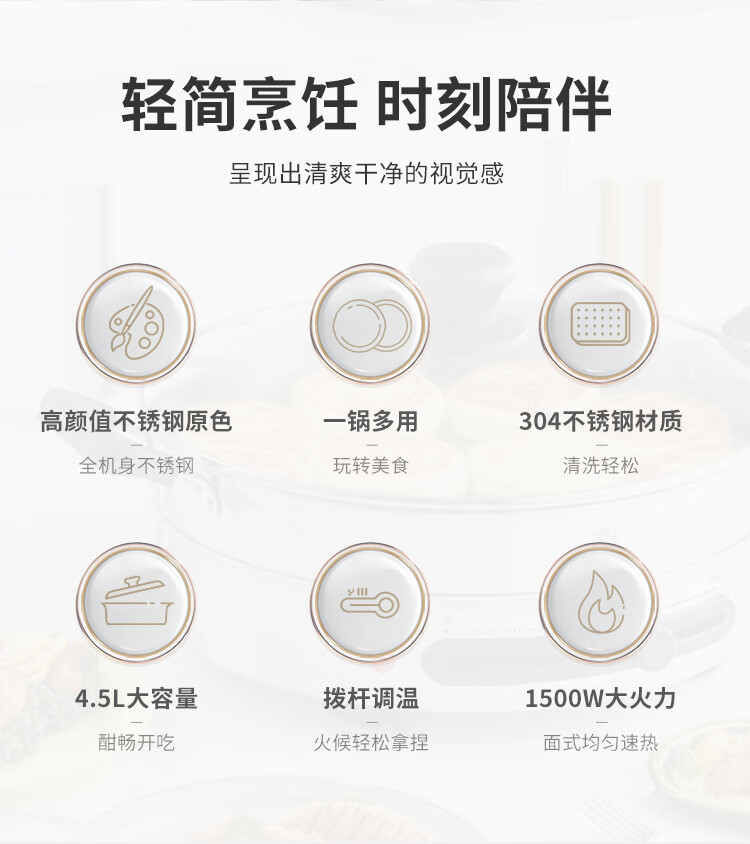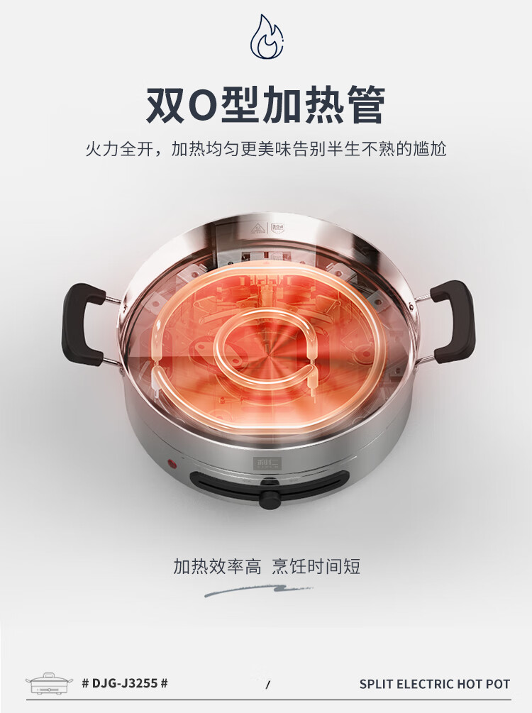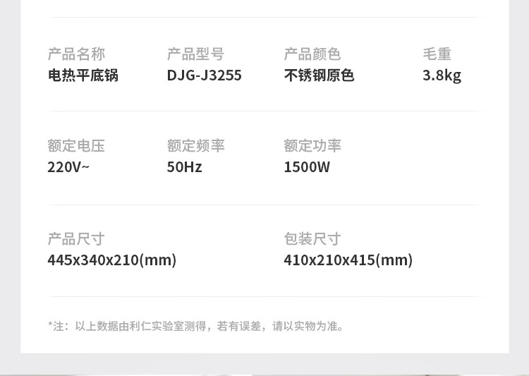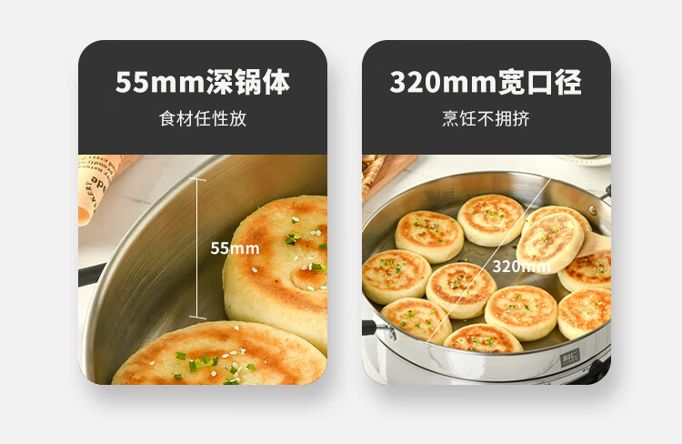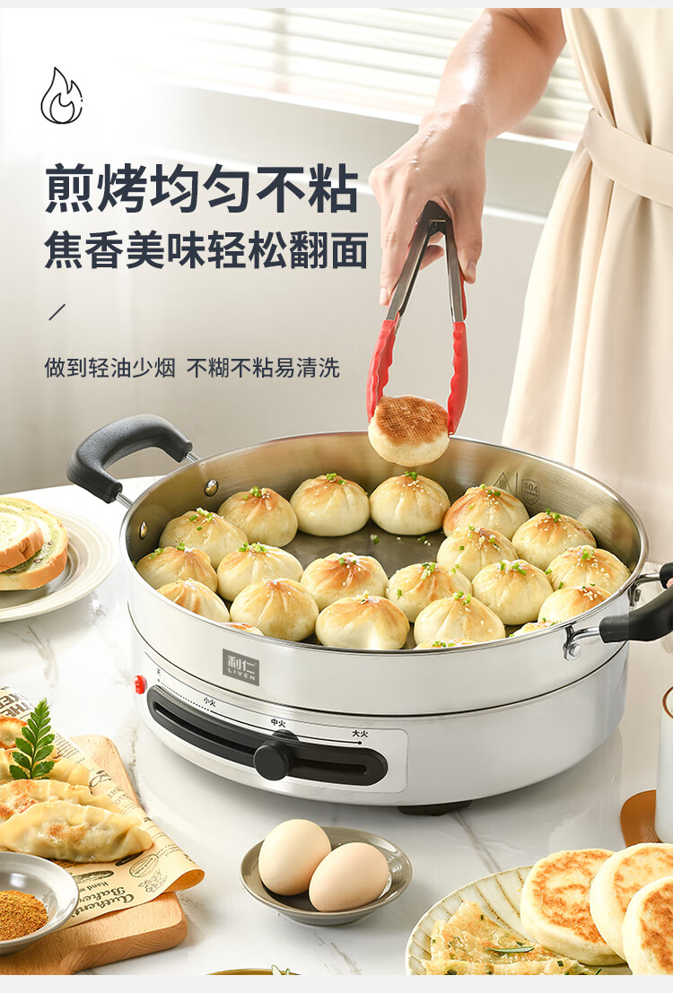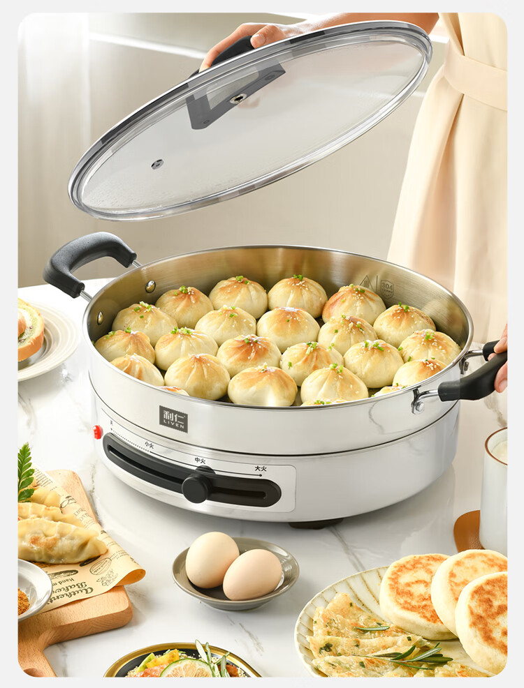 利仁(Liven)电饼铛电煎锅家庭用304不锈钢0涂层电饼档32cm加大55mm加深三明治早餐机DJG-J3255
