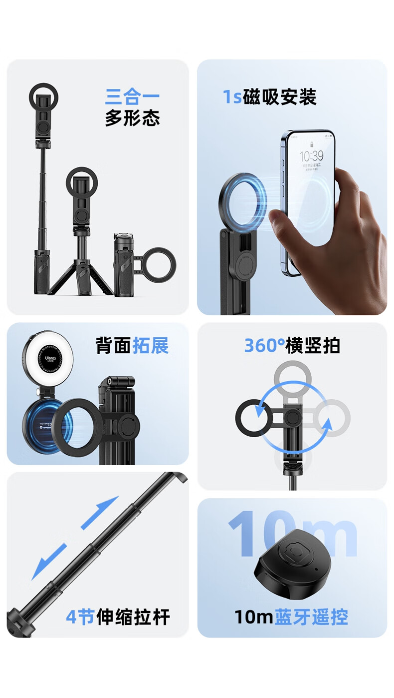 ulanzi优篮子JJ03 磁吸手柄蓝牙三脚架助拍器iphone16/17
