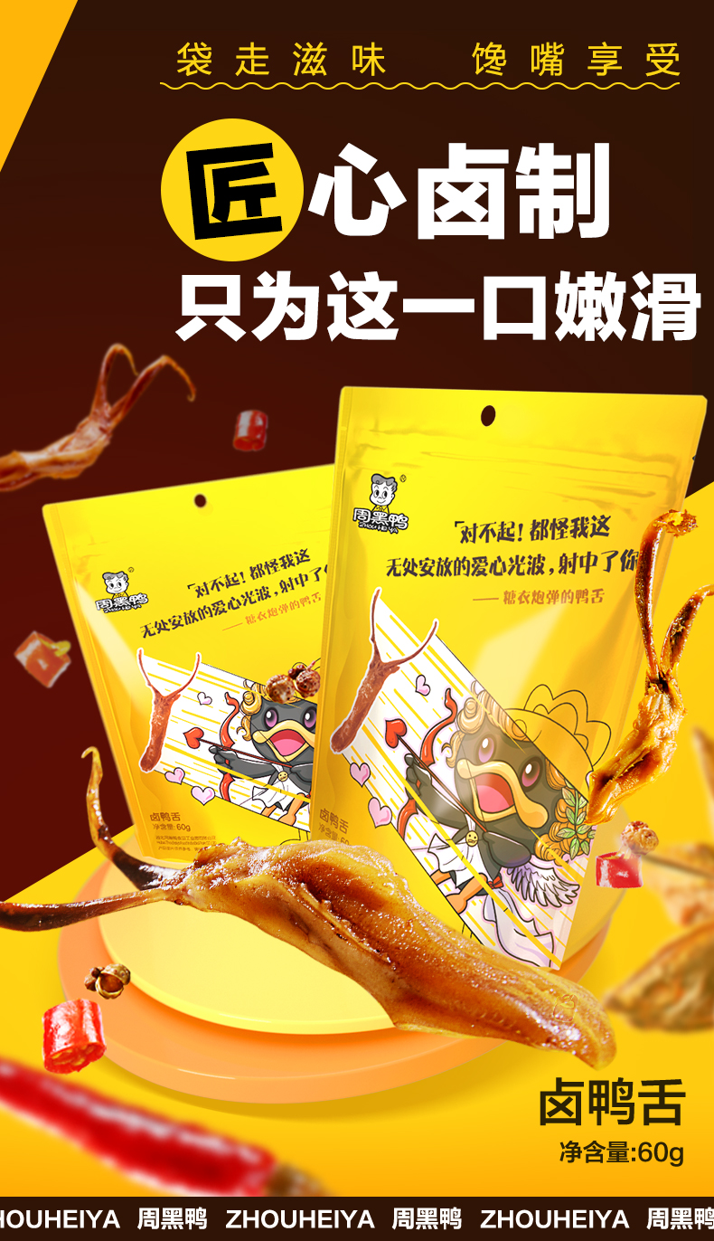 周黑鸭 甜辣卤鸭舌60g休闲零食熟食卤味小吃真空独立小包