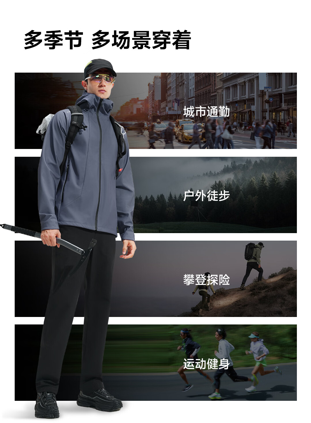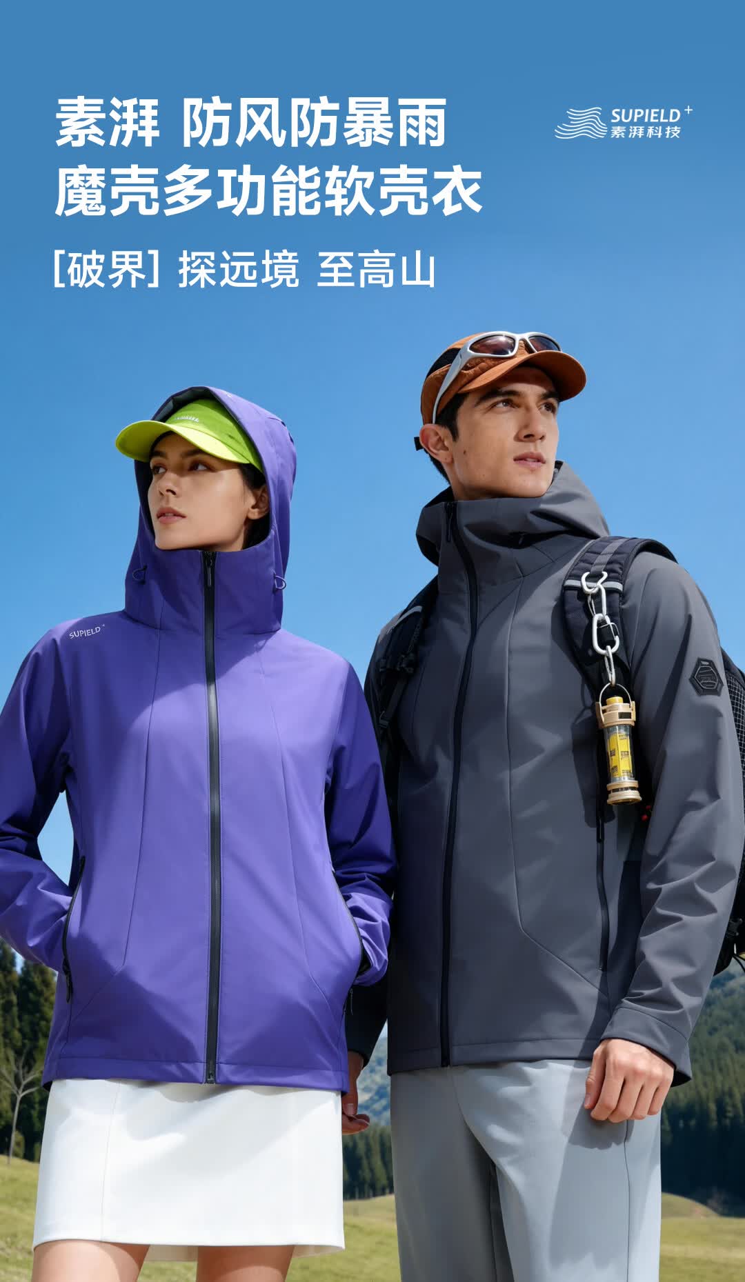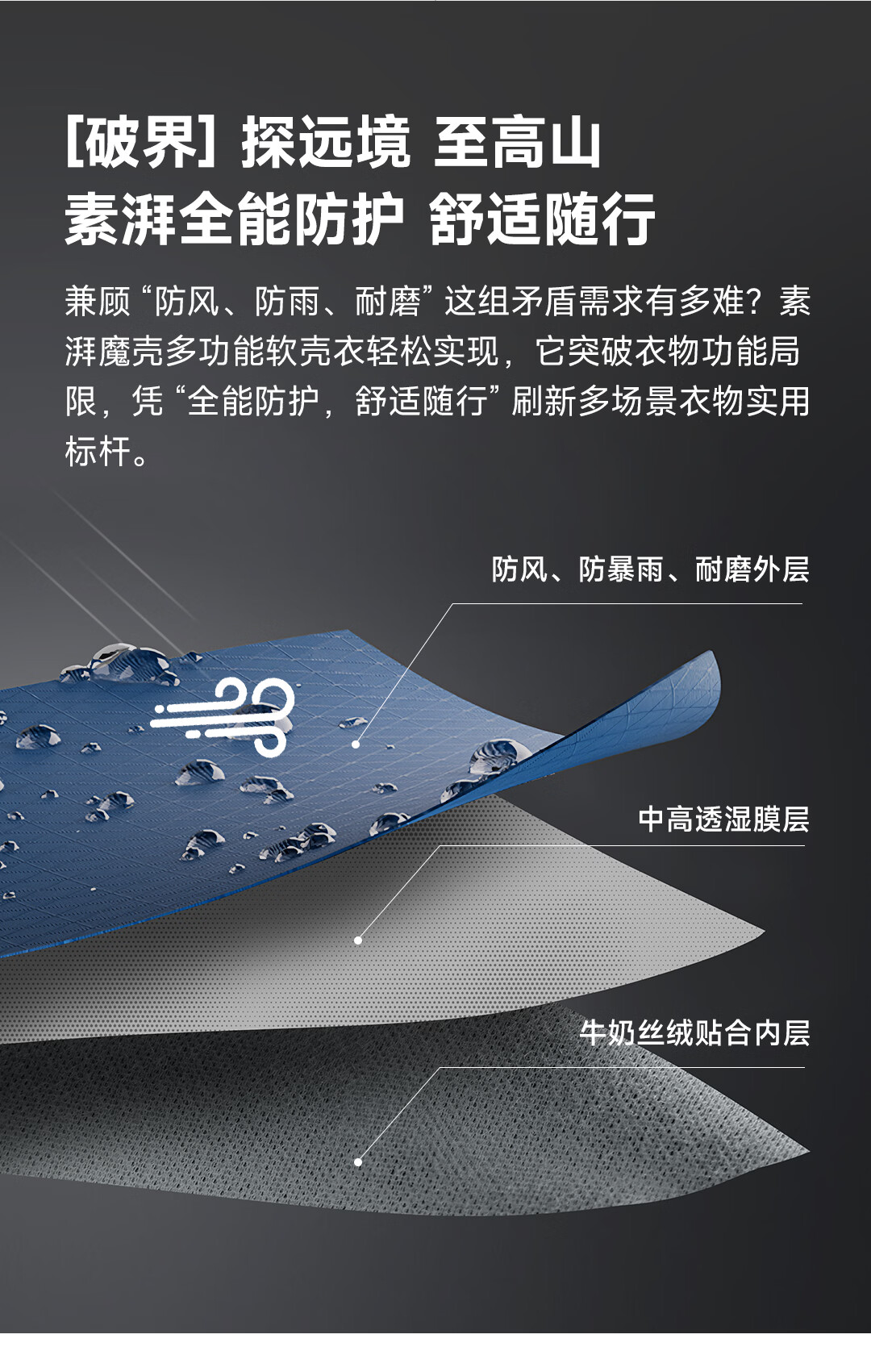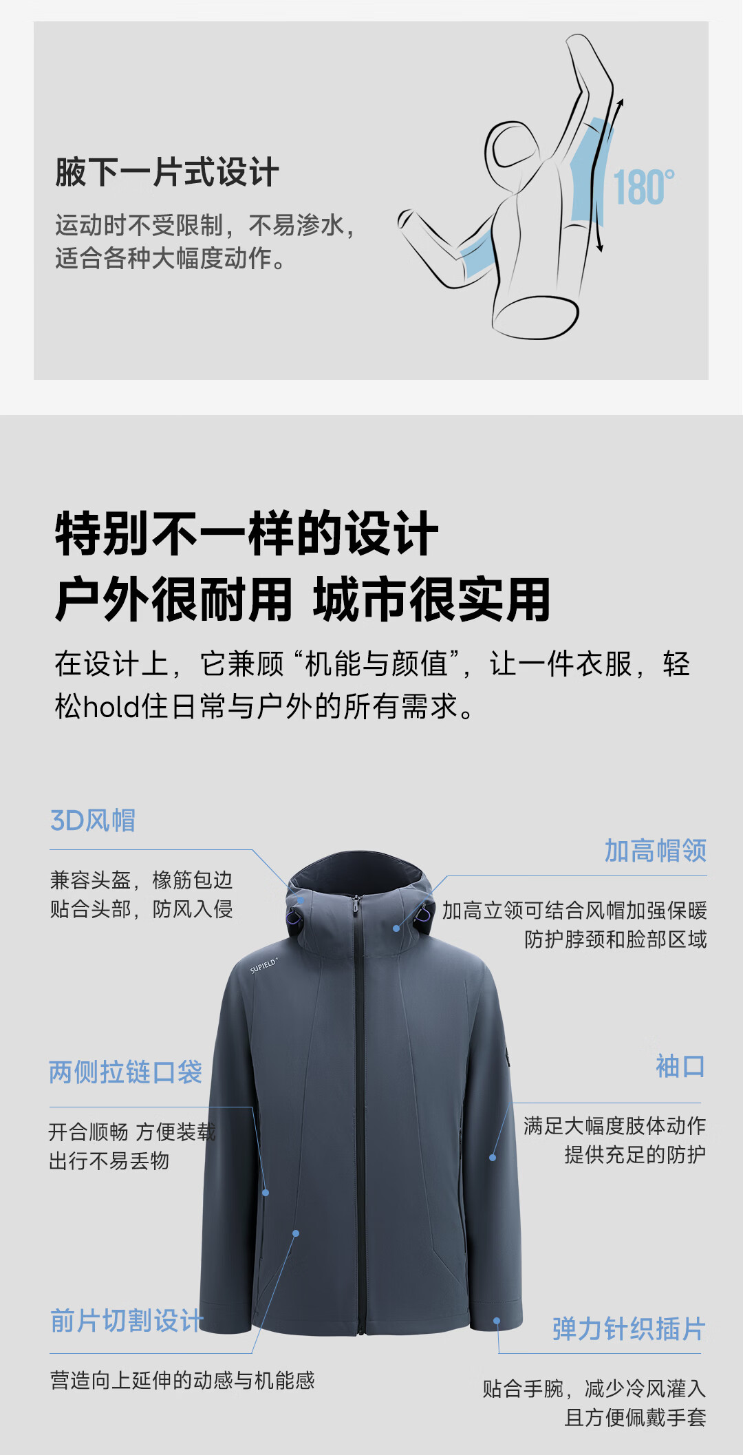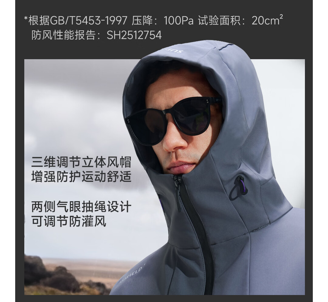 SUPIELD素湃防风防暴雨多功能软壳衣户外春男女连帽夹克外套 深灰色 L