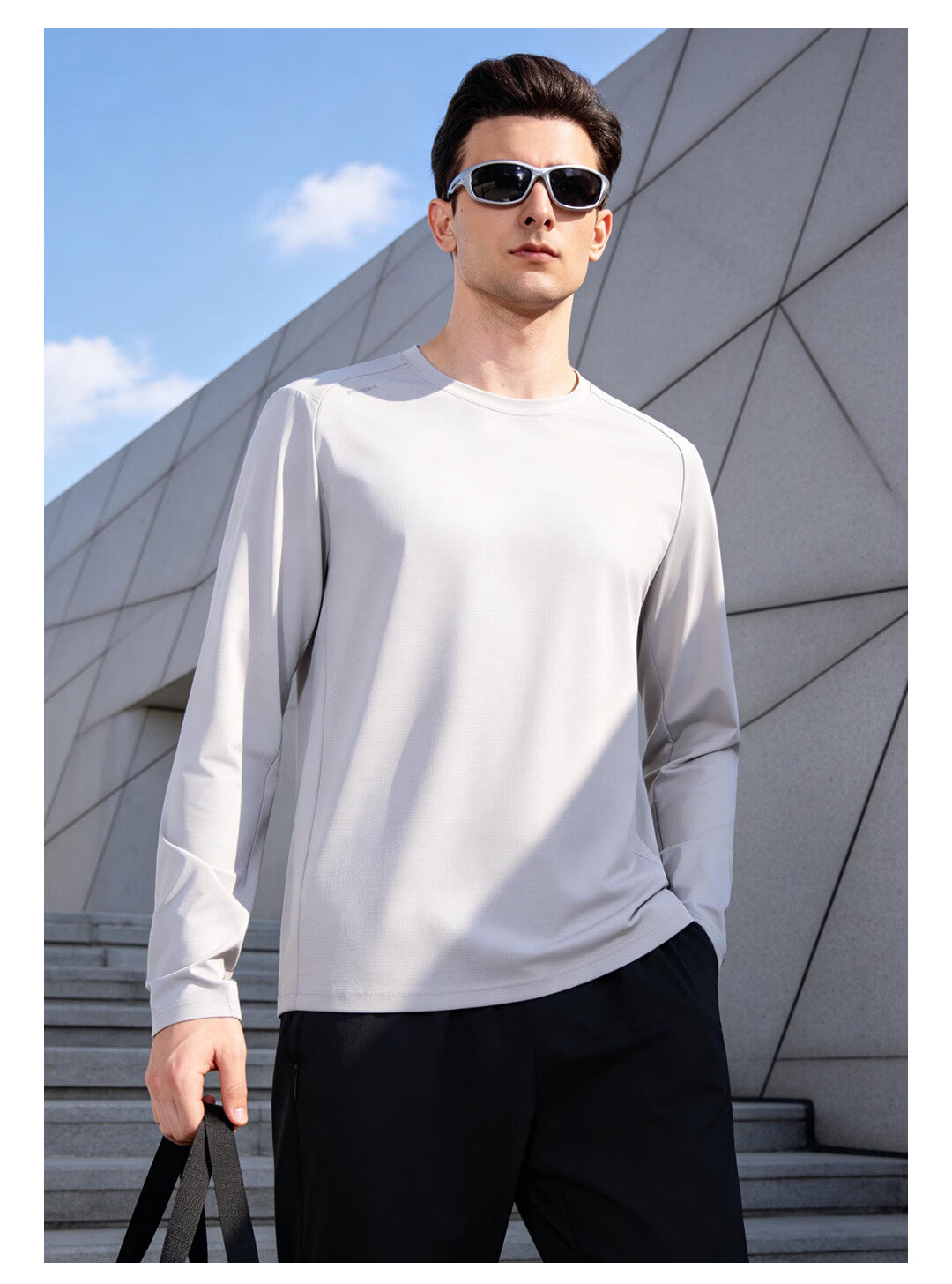 SUPIELD素湃水柔吸湿速干长袖T恤男春高弹力防晒运动打底衫 沙砾灰 L
