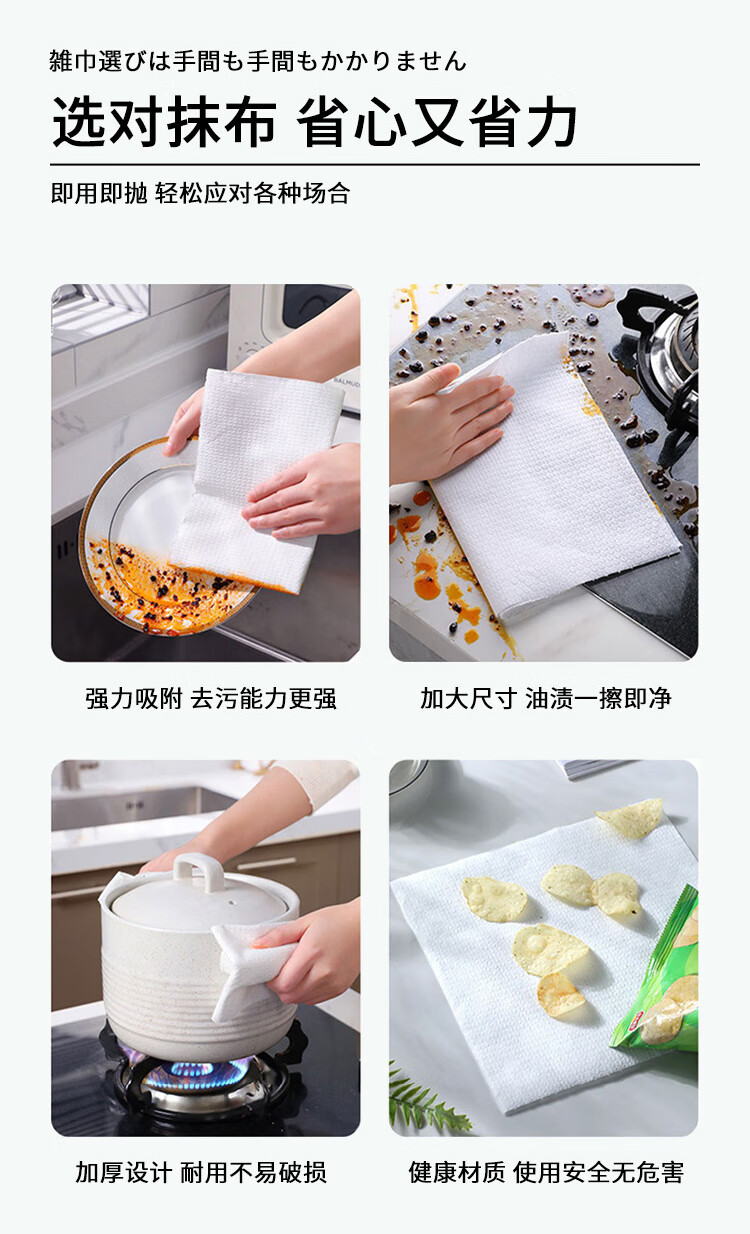 巨奇一次性懒人抹布20*25CM*6卷300撕厨房用纸干湿两用洗碗布加大加厚