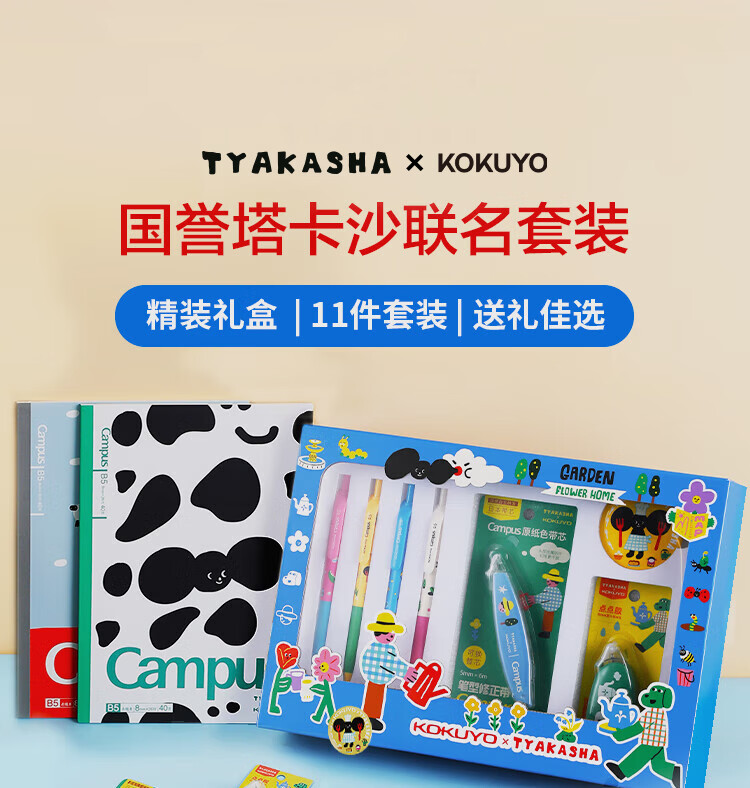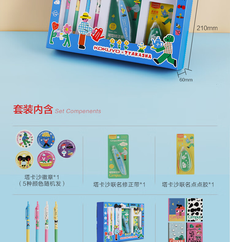 国誉(KOKUYO)塔卡沙联名文具礼盒吧唧徽章学生高颜值毕业高考祝福套装生日礼物文具套盒TZ250001