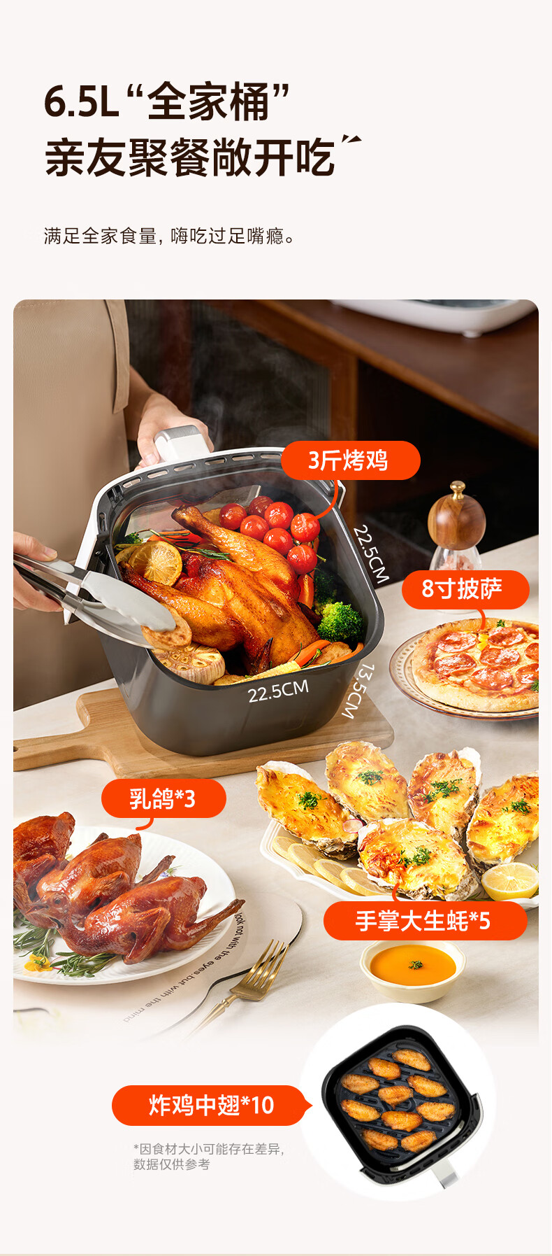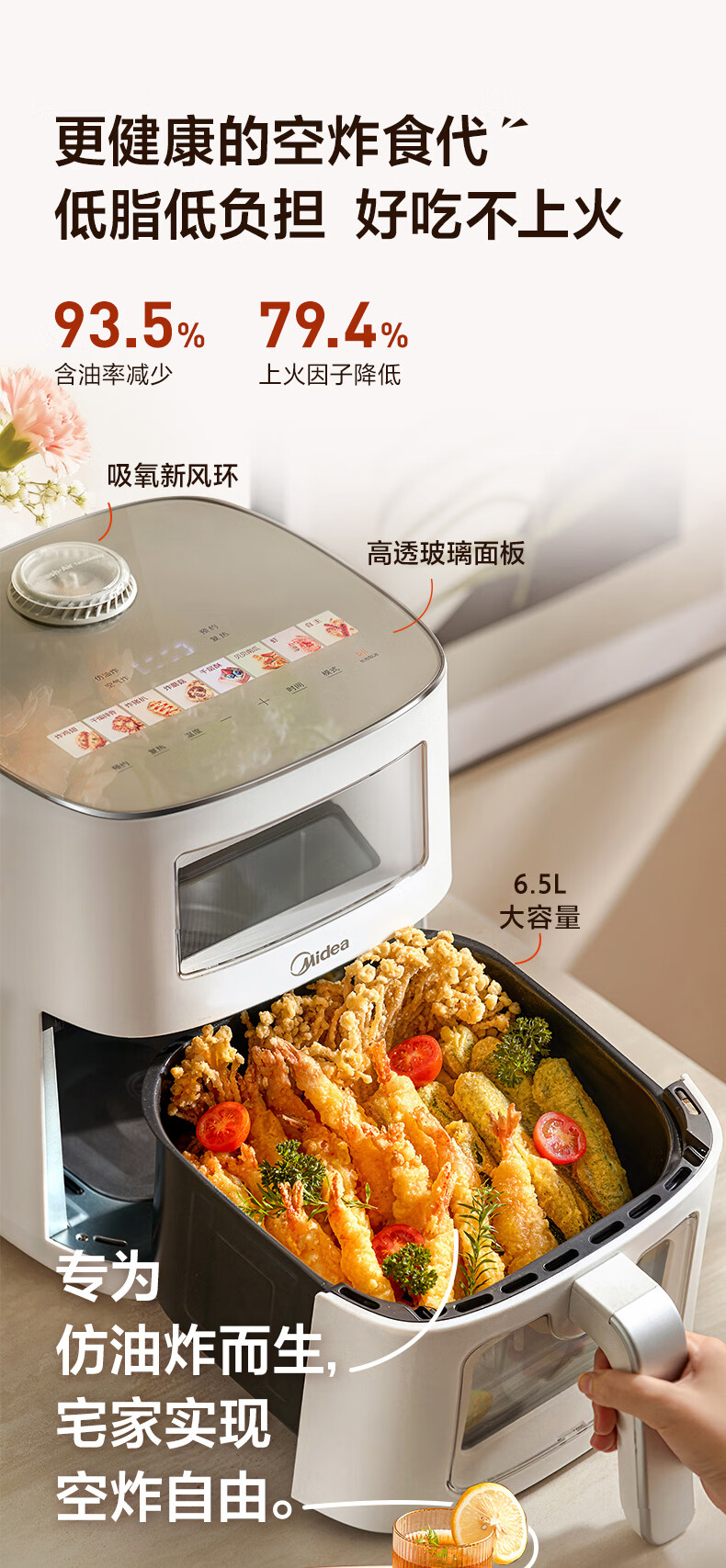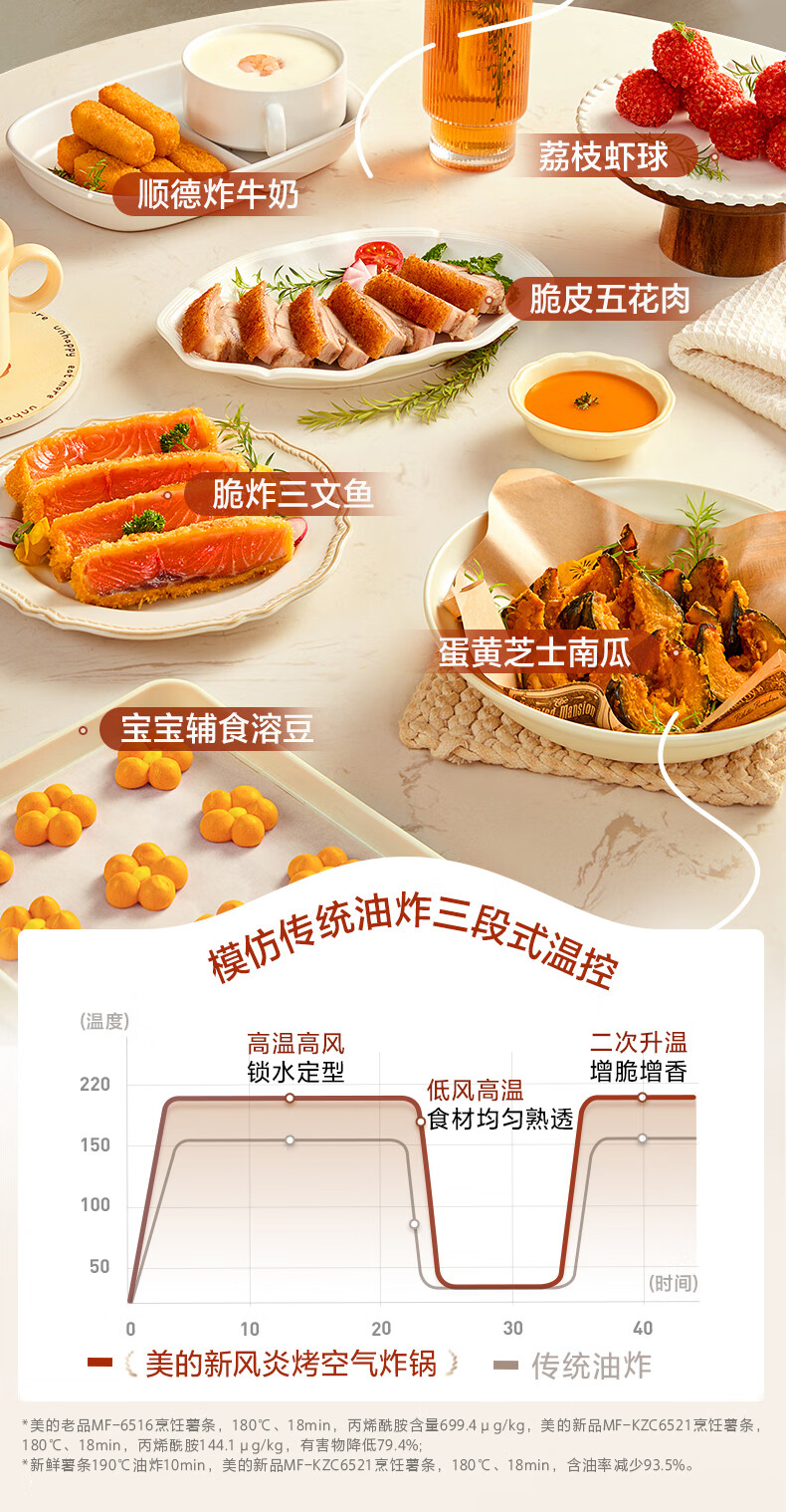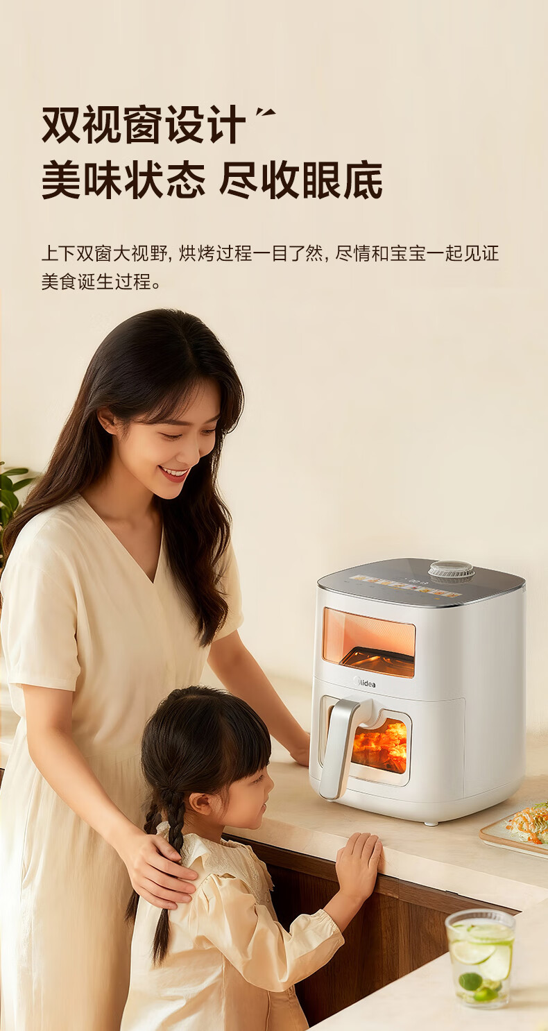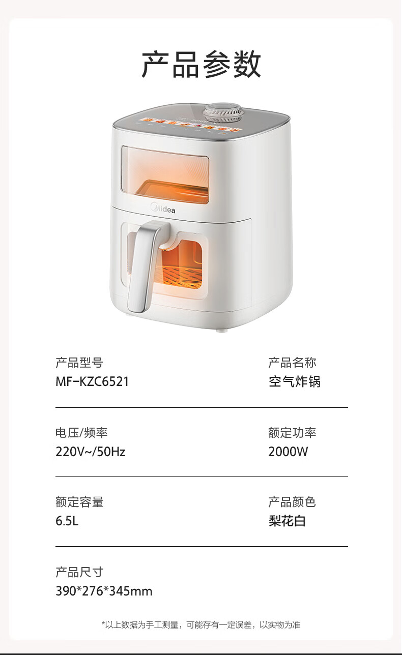 美的(Midea)新风炎烤空气炸锅0氟涂层2025年新款免翻面 家用大容量6.5L 可视大视窗空气炸锅蒸烤一体 KZC6521