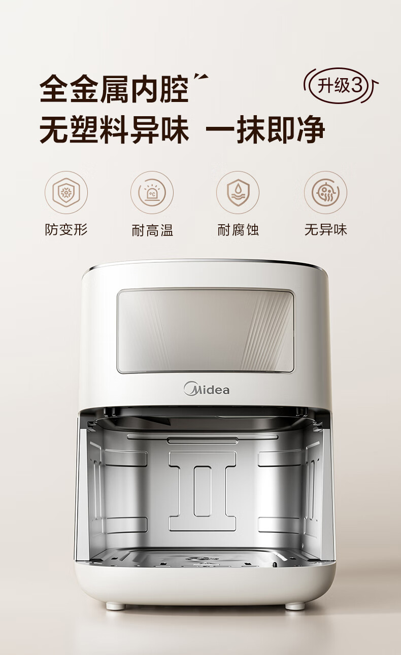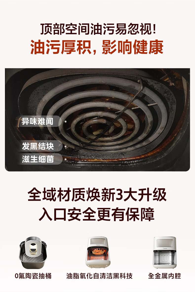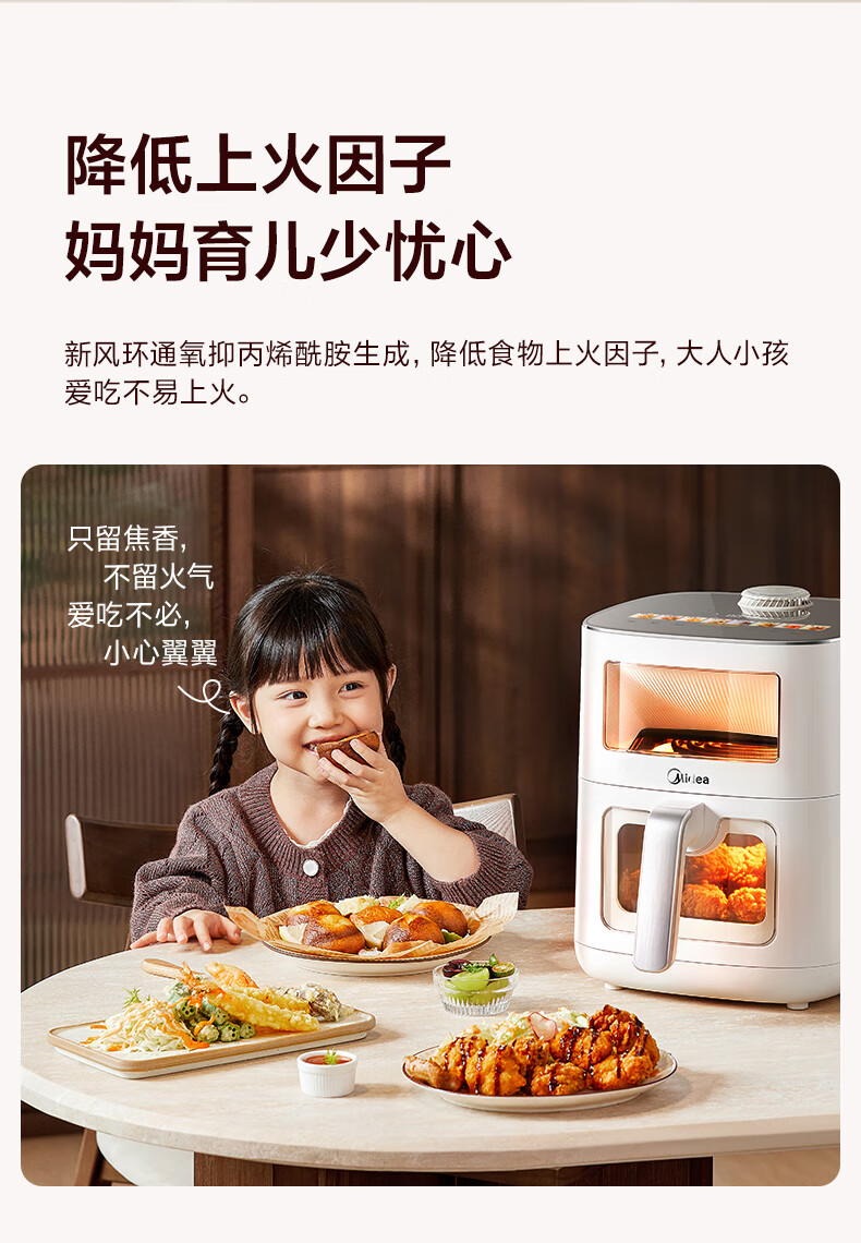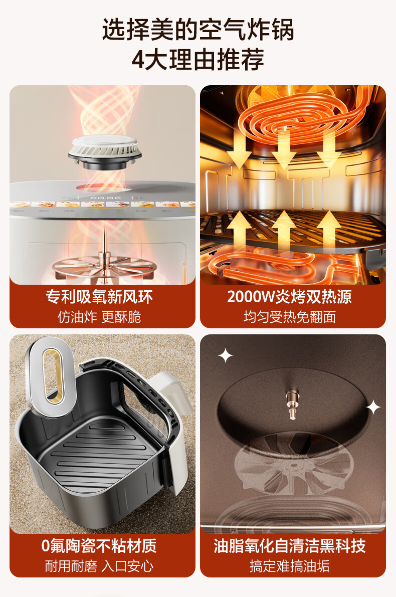美的(Midea)新风炎烤空气炸锅0氟涂层2025年新款免翻面