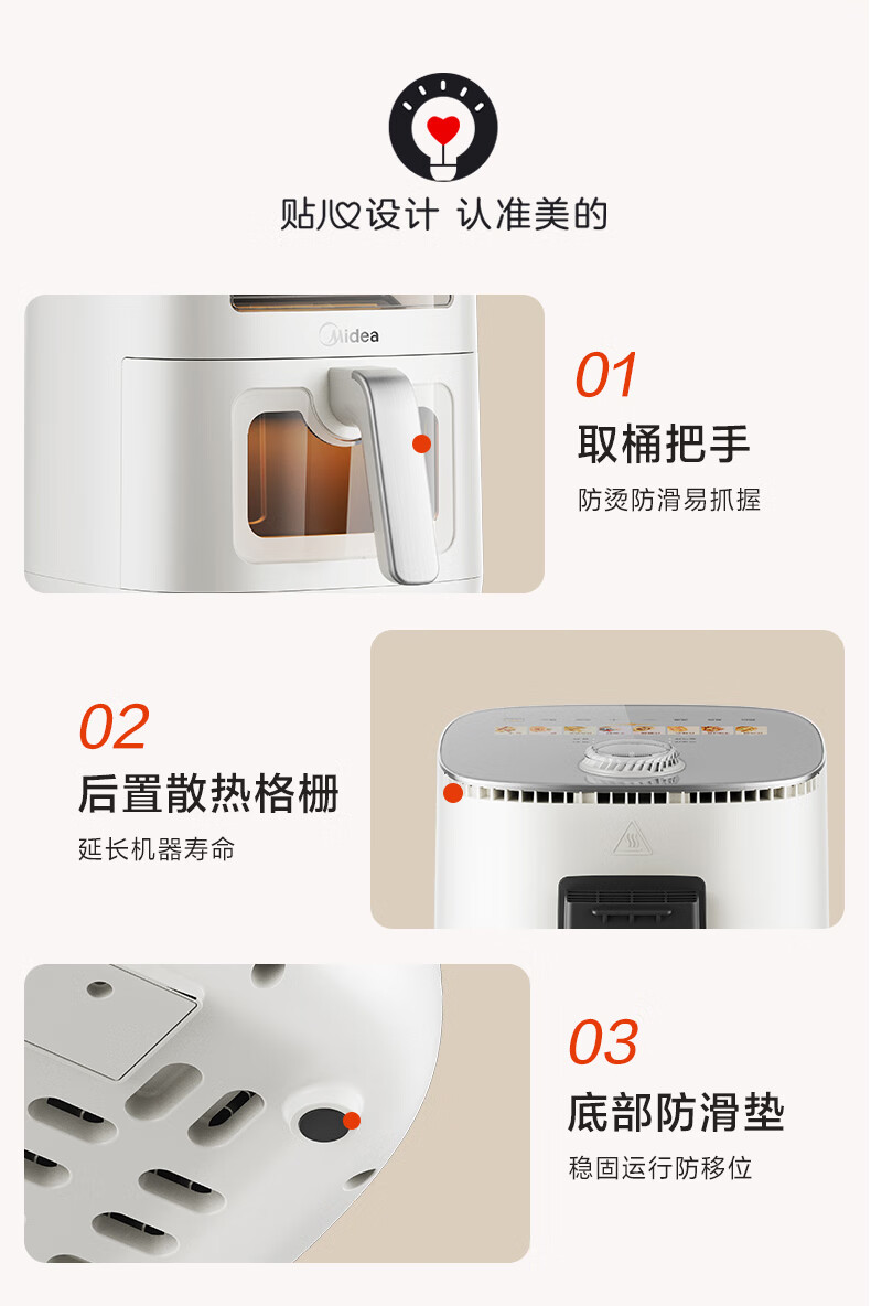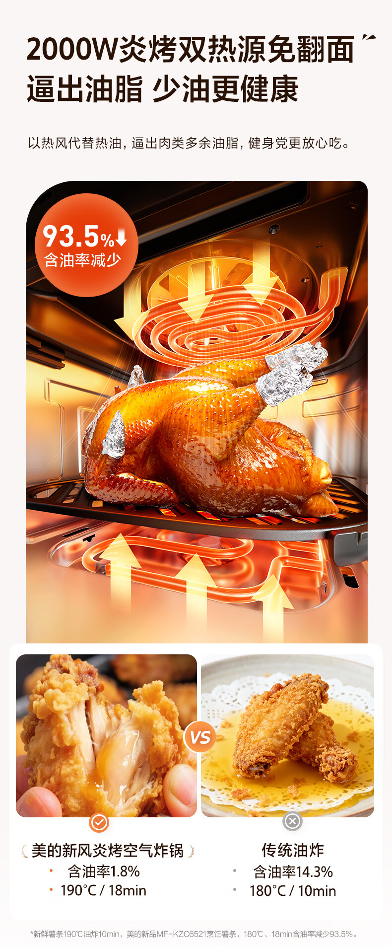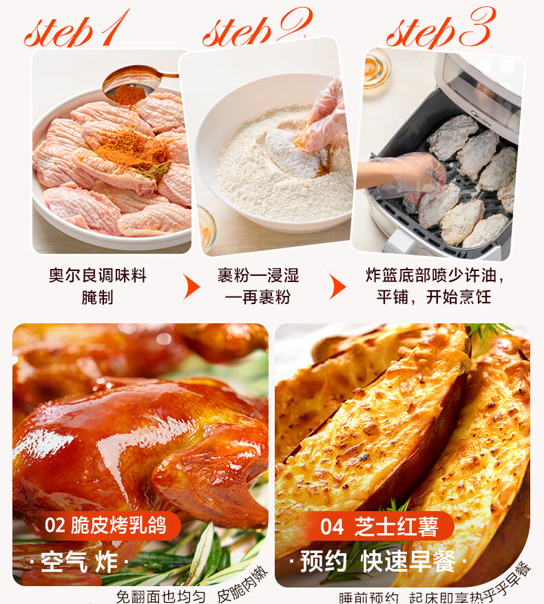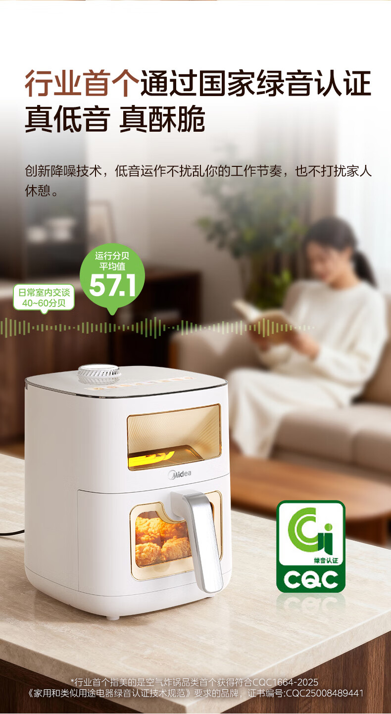美的(Midea)新风炎烤空气炸锅0氟涂层2025年新款免翻面
