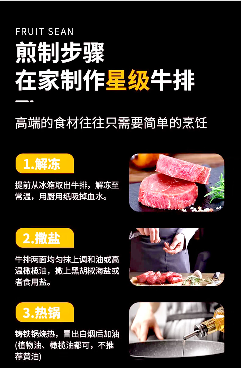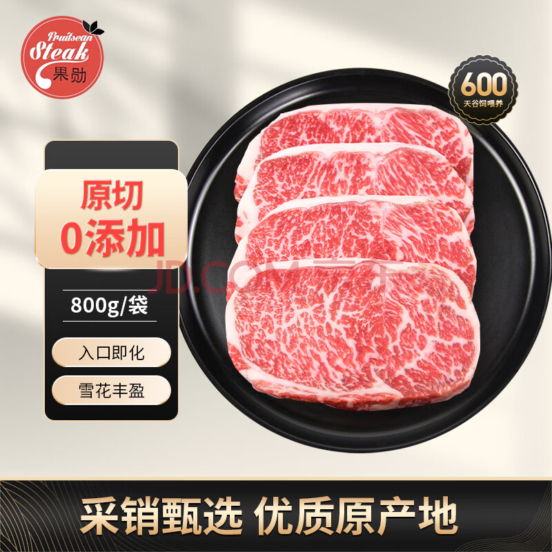 果勋国产和牛A3(M9)原切牛排 净重800g 谷饲雪花牛扒牛肉健身烤肉