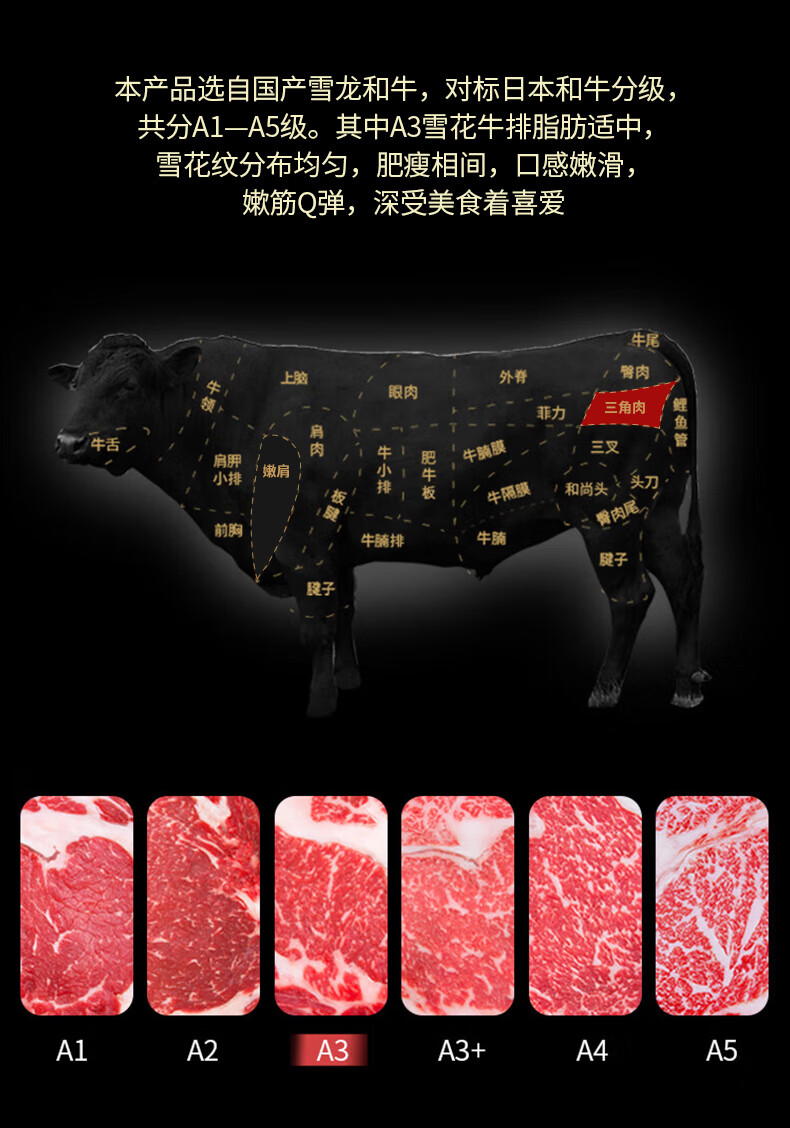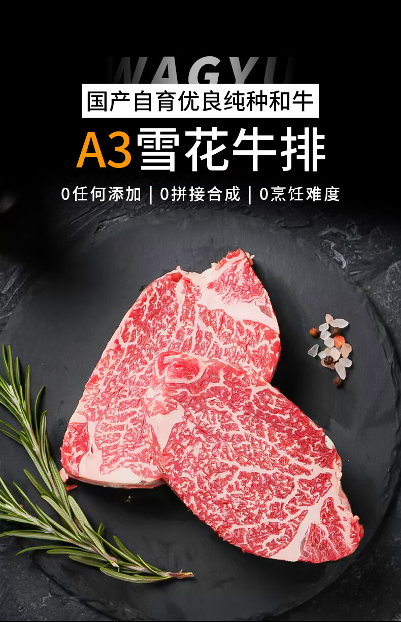 【奶香浓郁】和牛A3雪花牛排800g