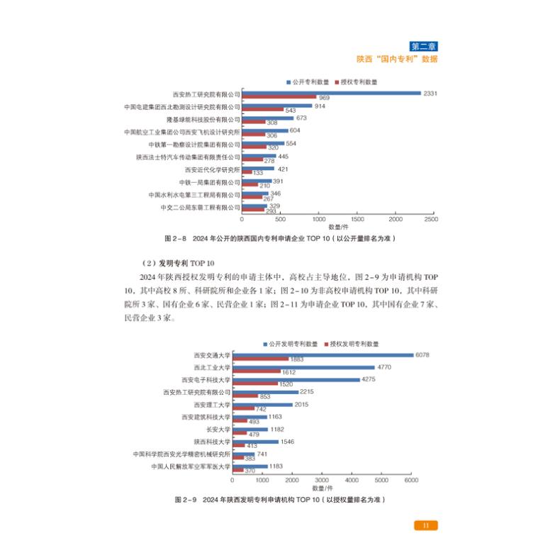 本书从专利公开量、授权量、有效发明专利、主要申请主体、技术分类5个维度对2024年陕西省全省及11个市(区)的专利数据进行分析;并遴选了陕西有比较优势的17个产业领域技术方向进行了重点分析。聚焦陕西高价值专利申请地市及县区,从专利数量和质量两大方面构建高价值专利评价指标,以2024年公开的专利数据为基础对各县区的高价值专利竞争力水平进行评价。