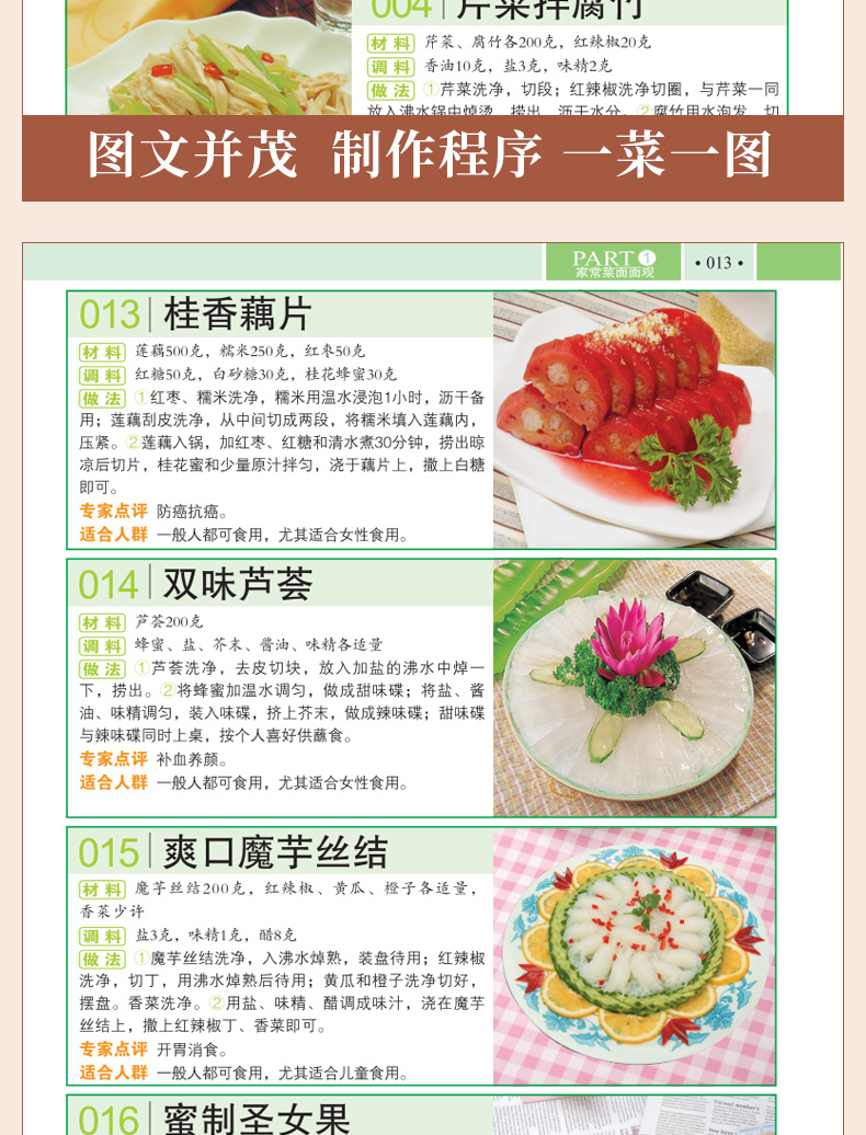 本书分为家常菜面面观、、防病进补美味汤、鲜香美味养身粥三部分,精选500余道家常菜,每一道佳肴均配有图文介绍。