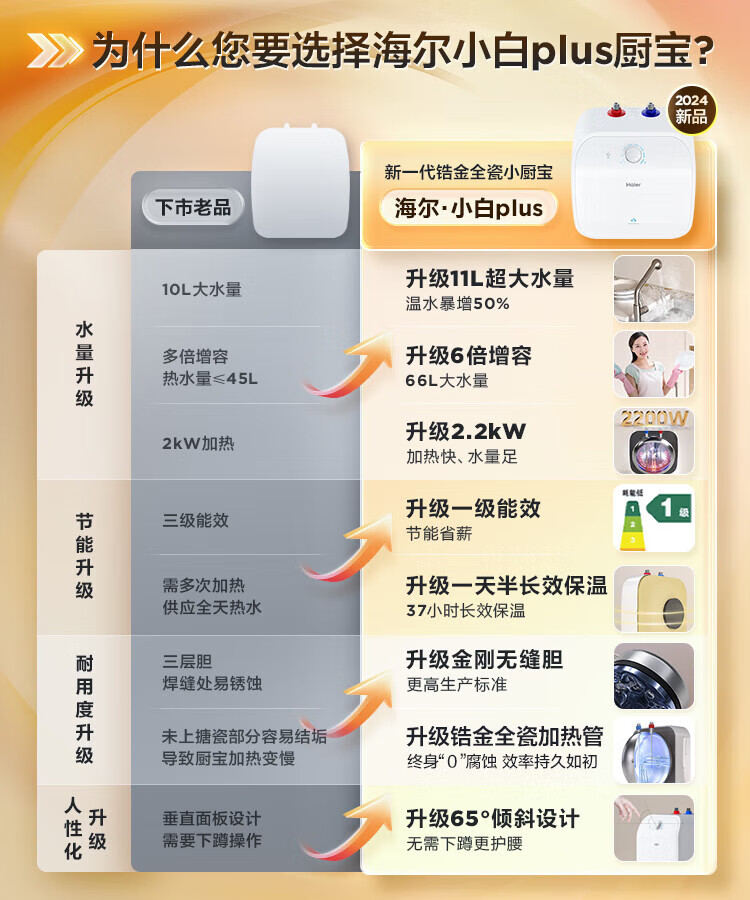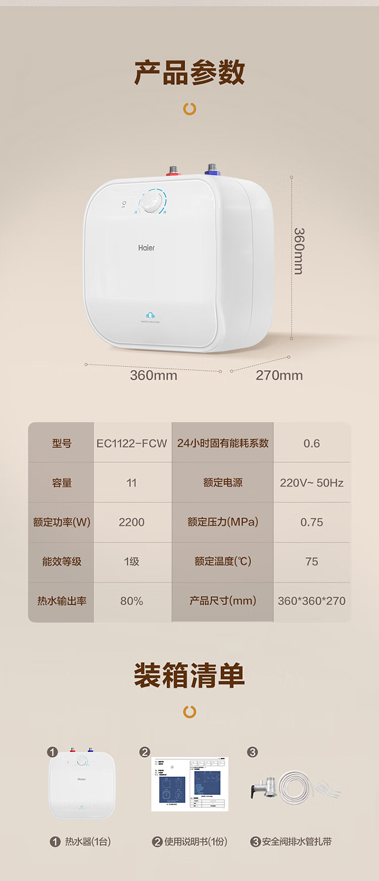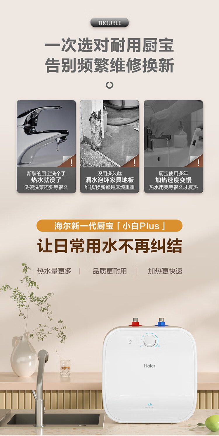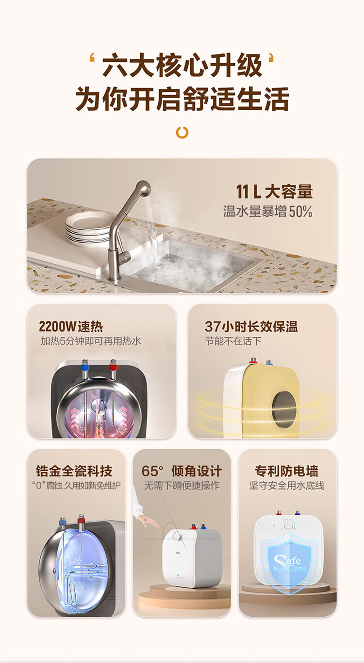 海尔(Haier)小厨宝电热水器11升 FCW 金刚无缝胆 一级能效节能2200W速热储水式家用厨房小型热水宝