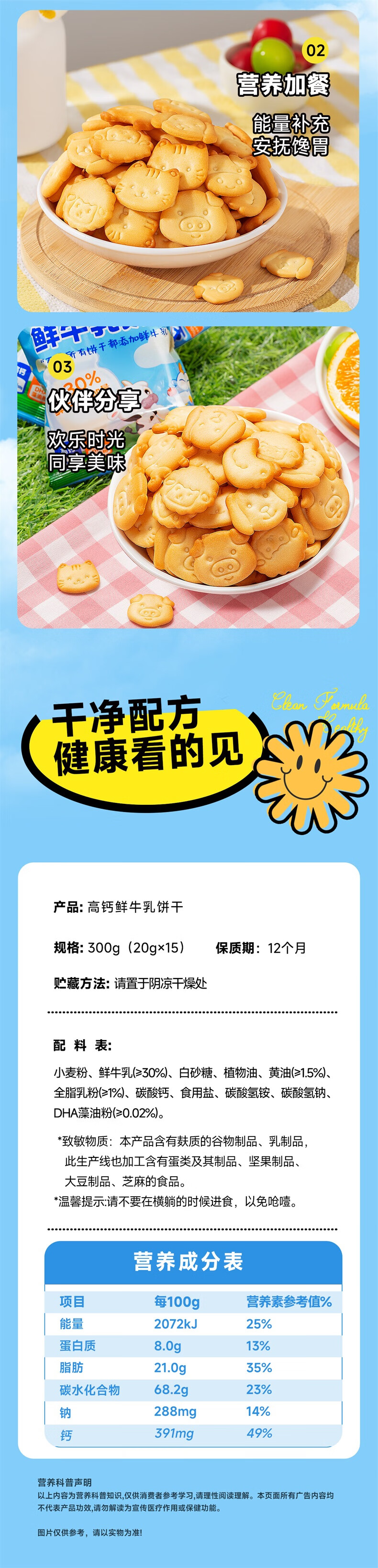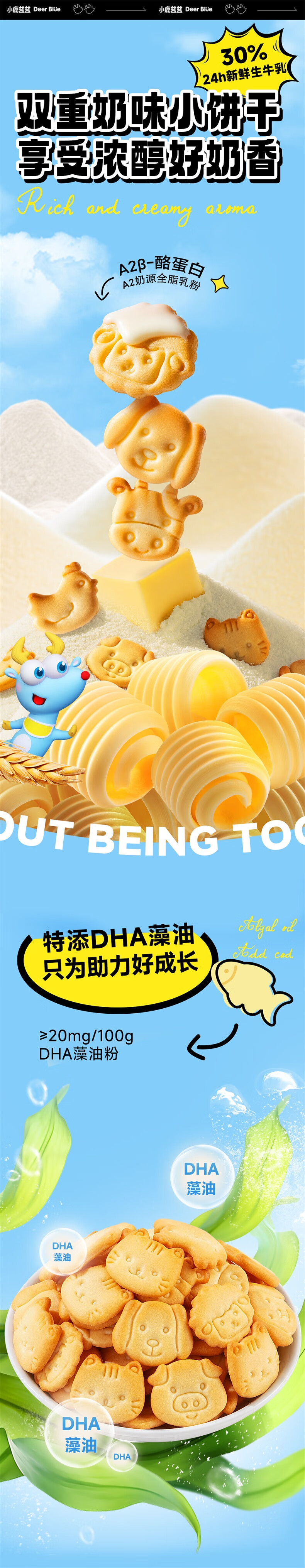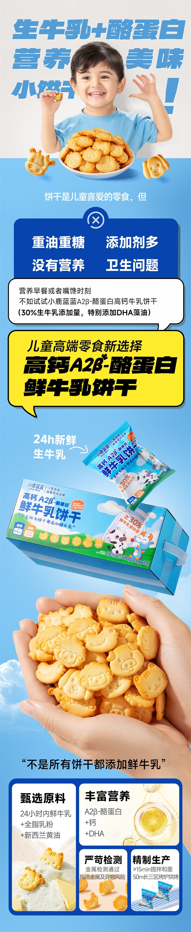 小鹿蓝蓝热门商品高钙A2β-酪蛋白鲜牛乳动物饼干送礼儿童饼干300g