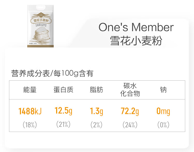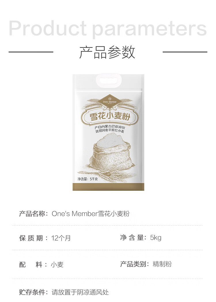 One's Member内蒙古河套平原雪花小麦粉5kg 雪花粉精制粉中筋面粉中秋团购送礼