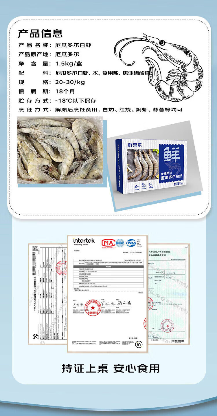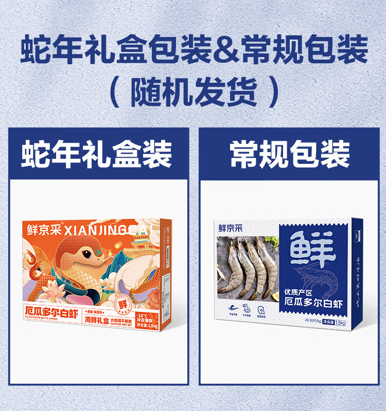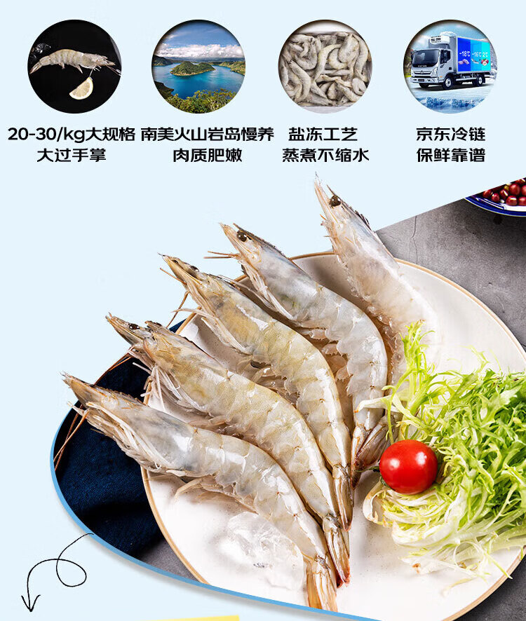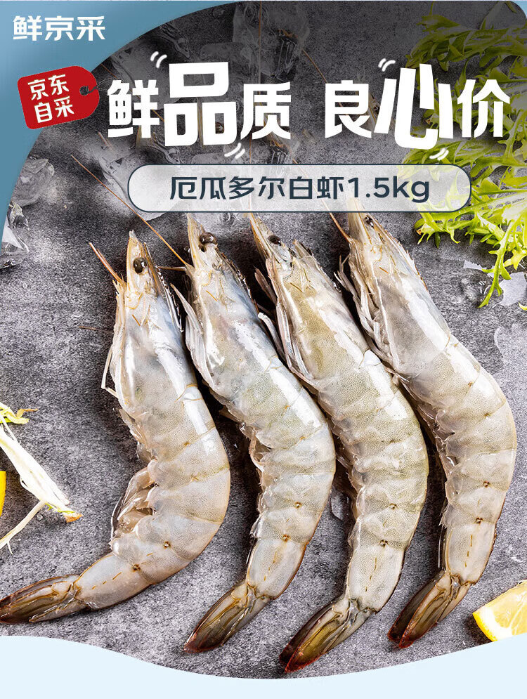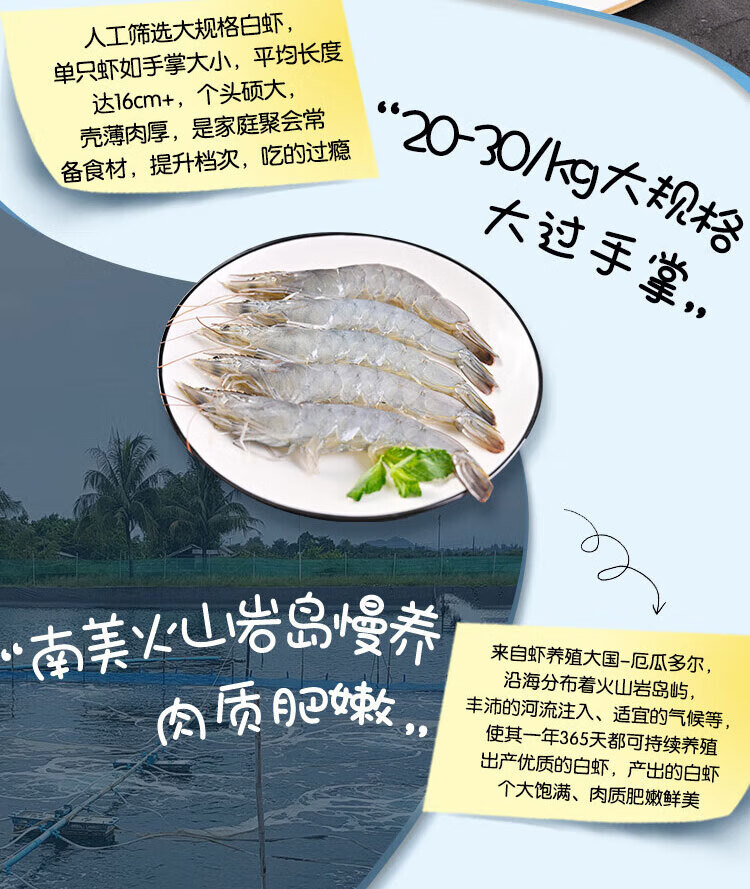 鲜京采 厄瓜多尔白虾 净重3斤/盒 特大号20-30规格 30-45只/盒