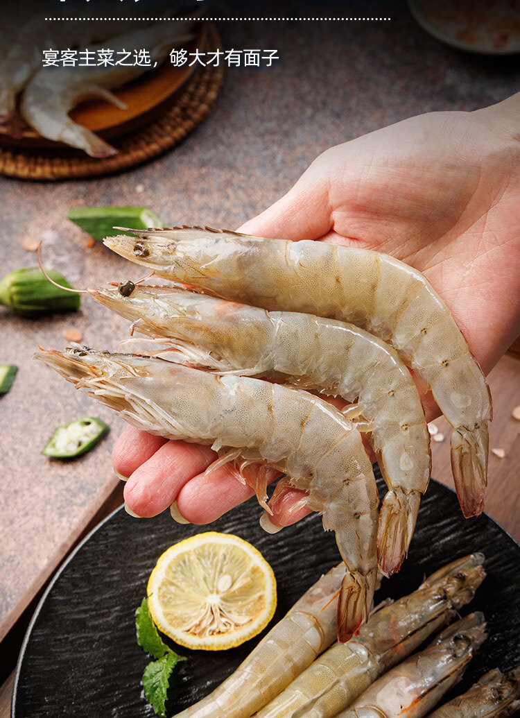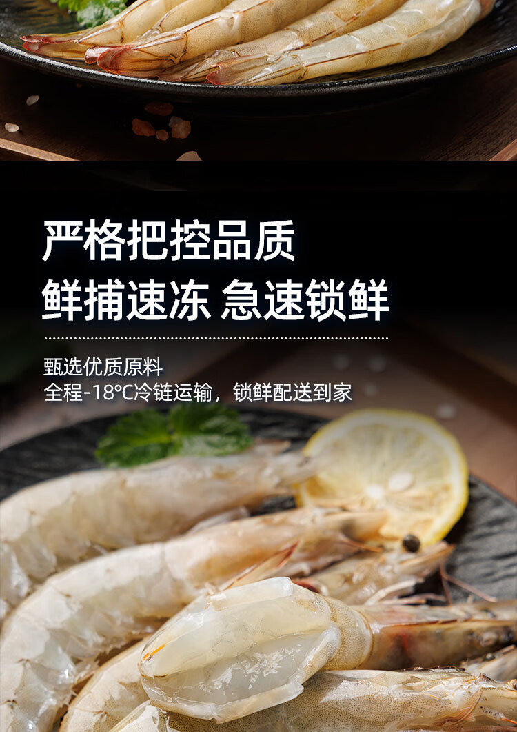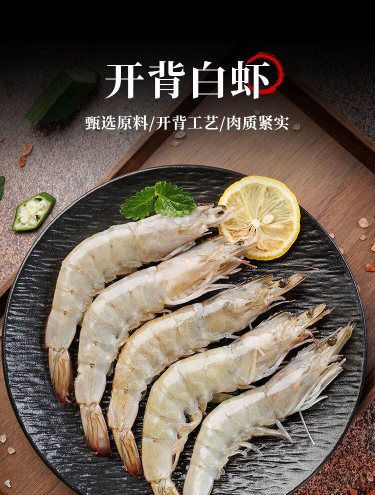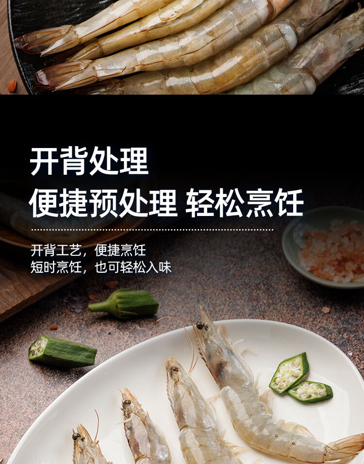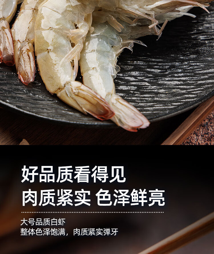鲜京采 开背去虾线海白虾3斤装 大号45-60只
