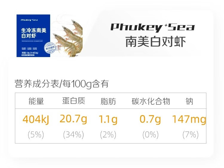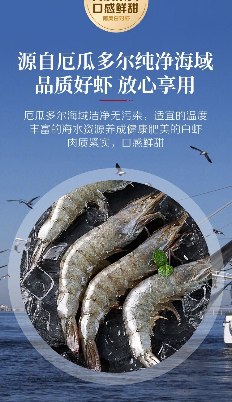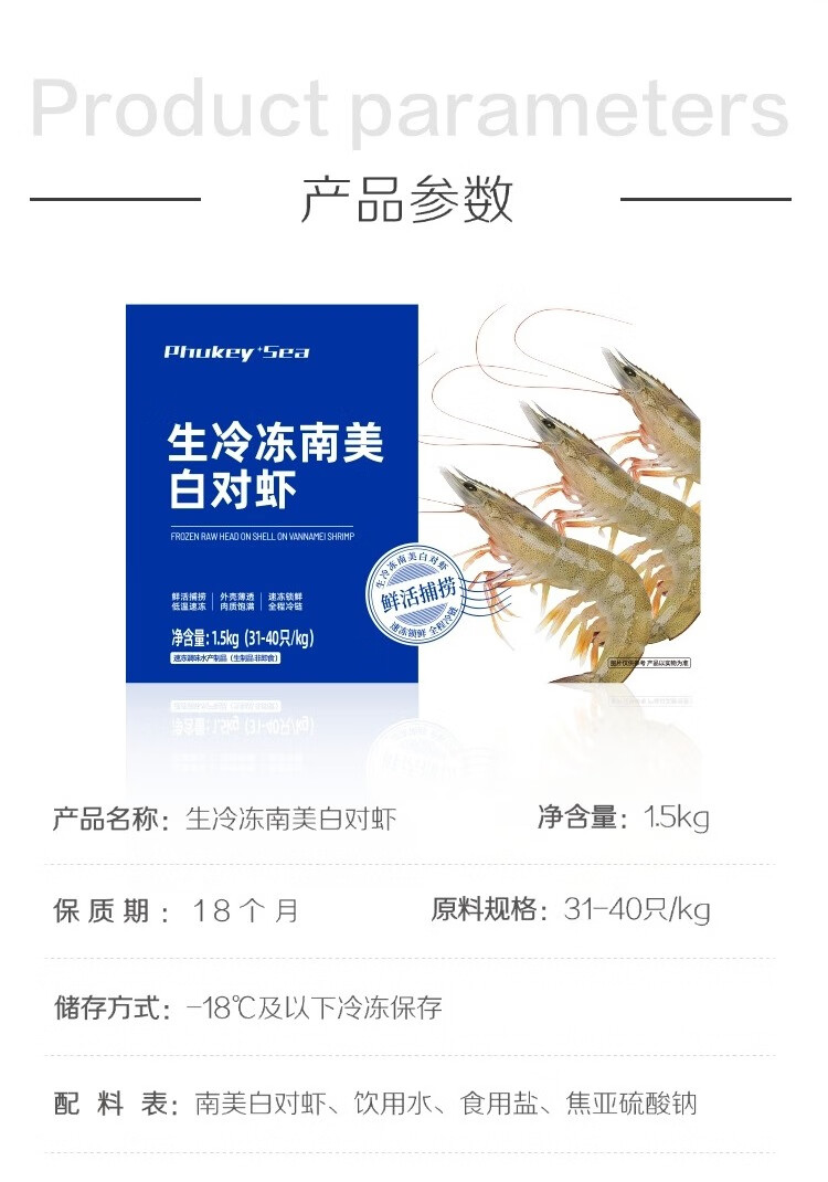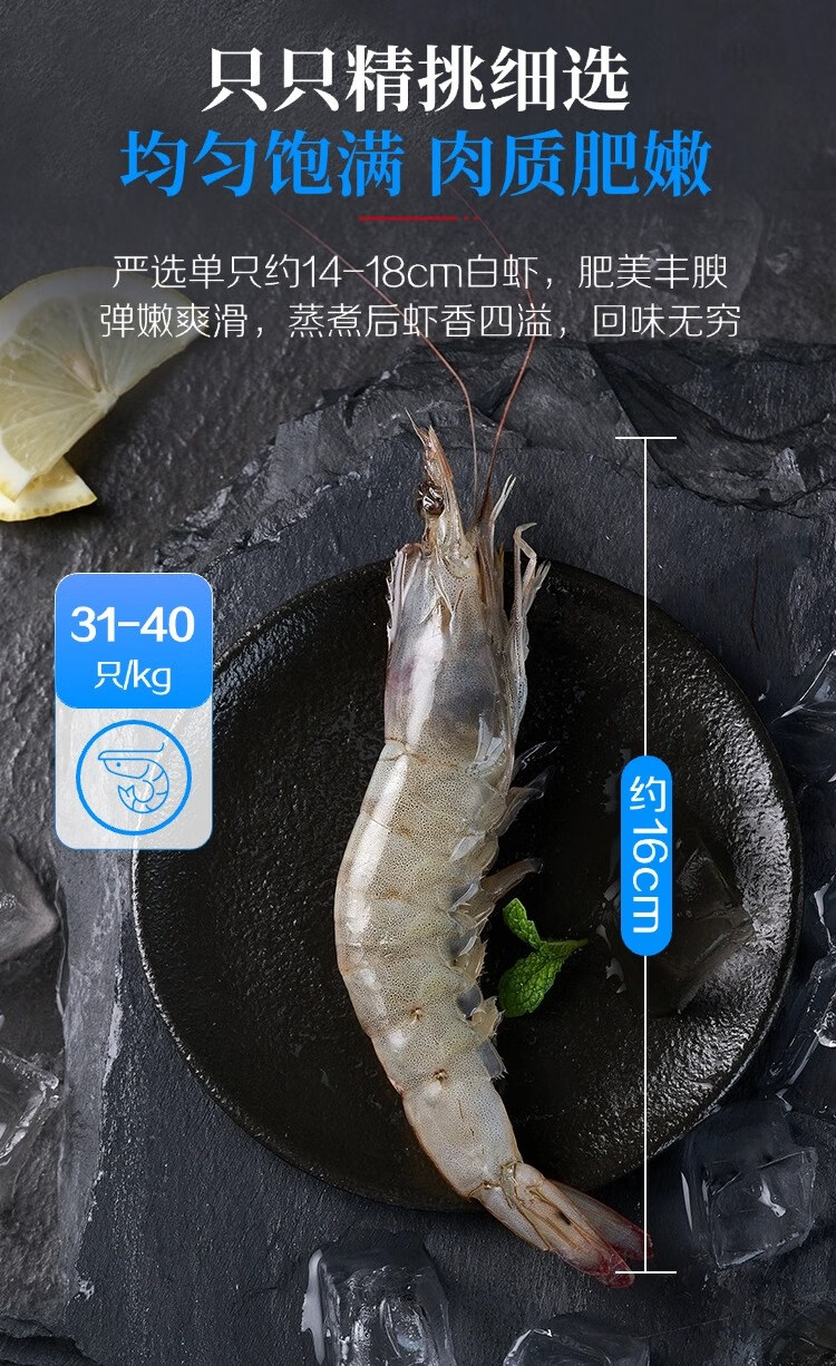 PHUKEY SEA大号厄瓜多尔冻南美白对虾 只只分离 海鲜水产 3斤 (31-40只/KG)