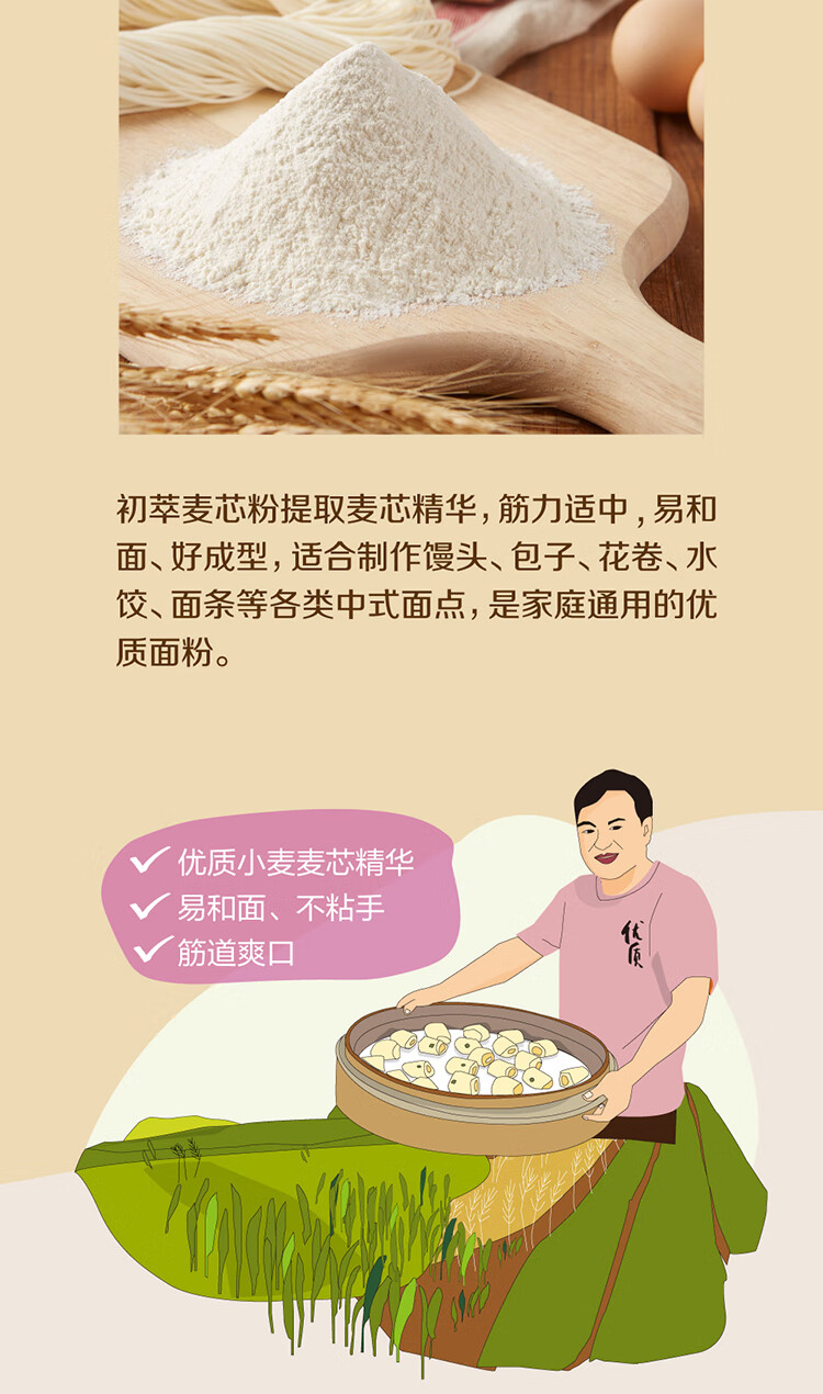 初萃 中粮麦芯粉5斤 中筋面粉 馒头包子面条饺子通用小麦粉
