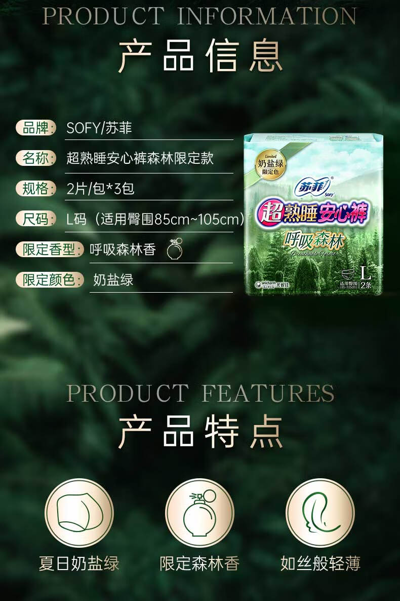 苏菲超熟睡安心裤森林限定超薄夜用L码6条无感安睡裤官方旗舰