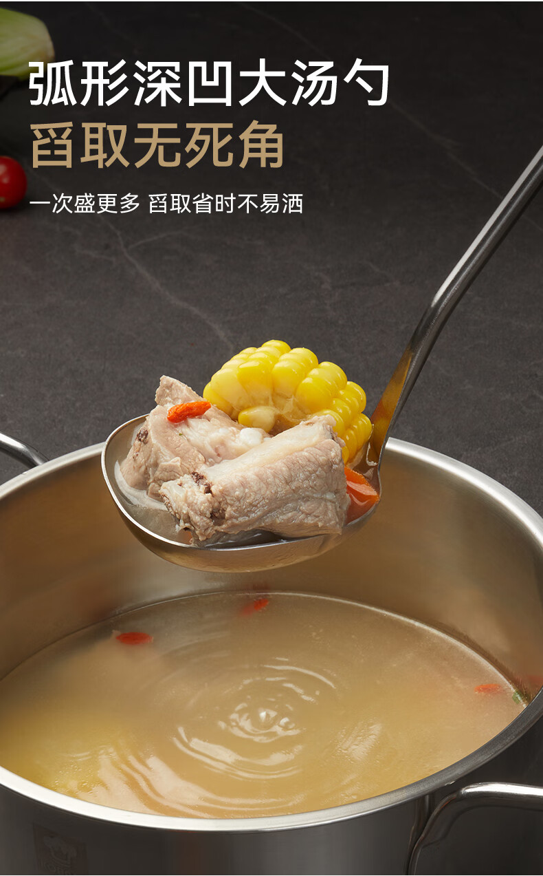 京造 勺子 汤饭勺304不锈钢食品接触级餐具宫廷勺【光滑不