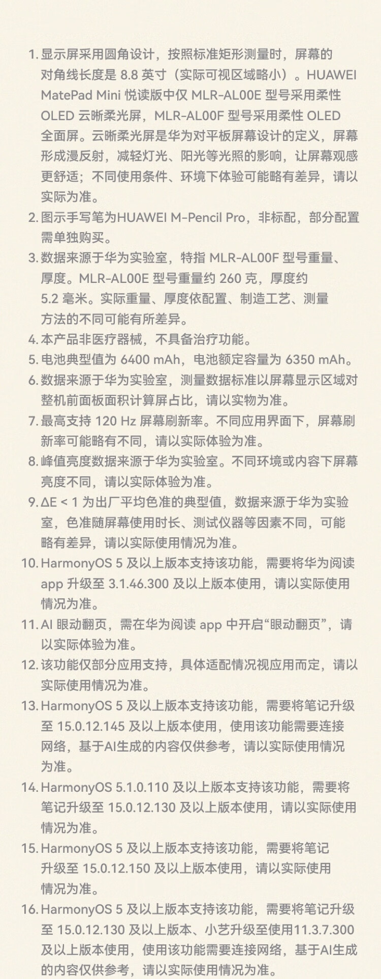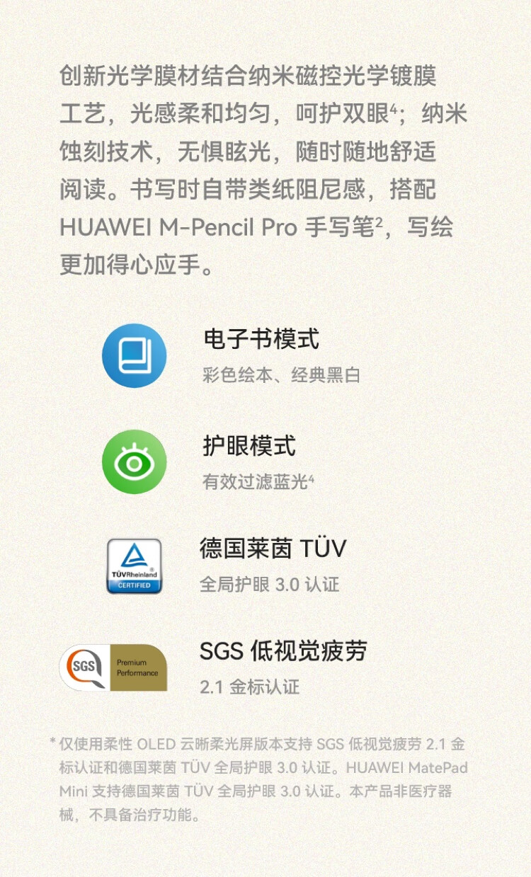 HUAWEI MatePad Mini 悦读版 云晰柔光屏 华为平板电脑8.8英寸OLED屏SIM卡版可通话 12GB+256GB 雪域白