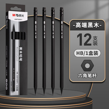 晨光(M&G)黑木铅笔学生专用无毒素描书写木杆铅笔黑木六角HB带橡皮头AWP308F6【12支/HB/1盒】