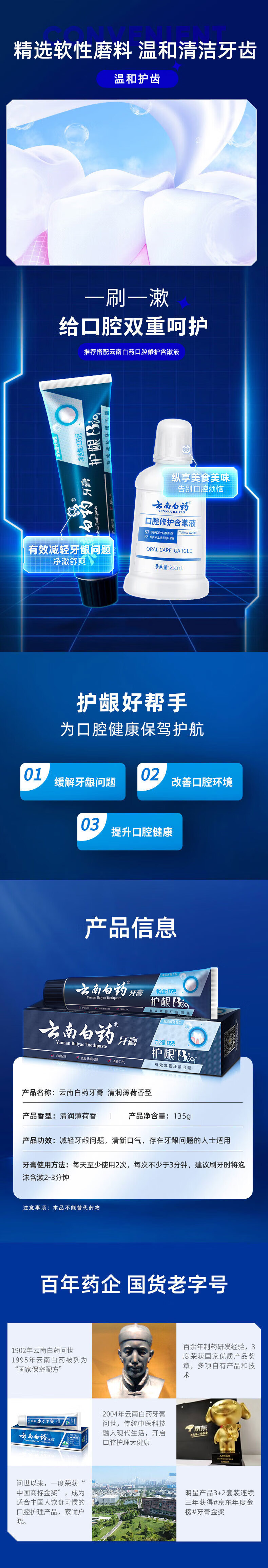 云南白药高端系列口腔护理牙膏 清新口气洁齿护龈 缓解口腔问题牙膏135g