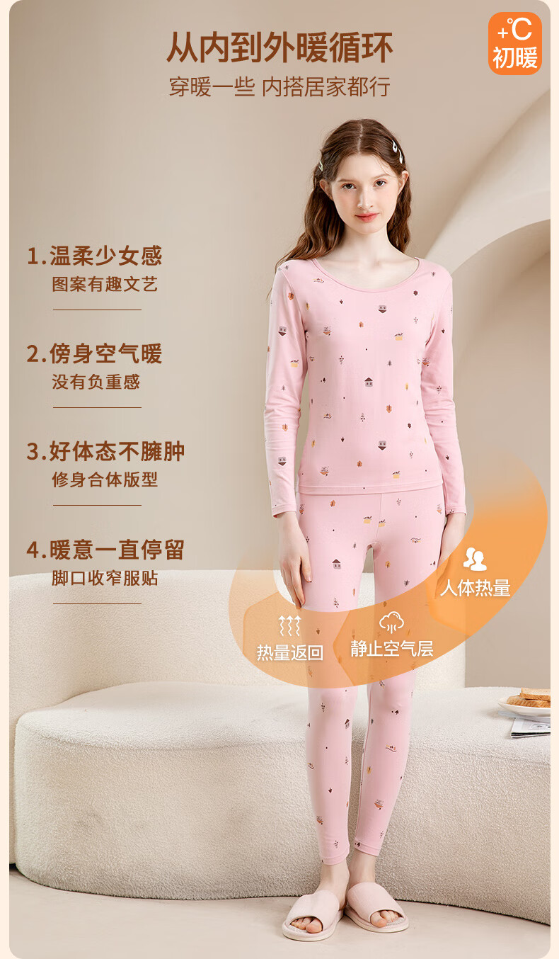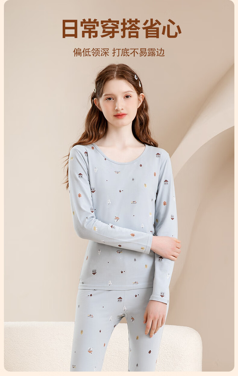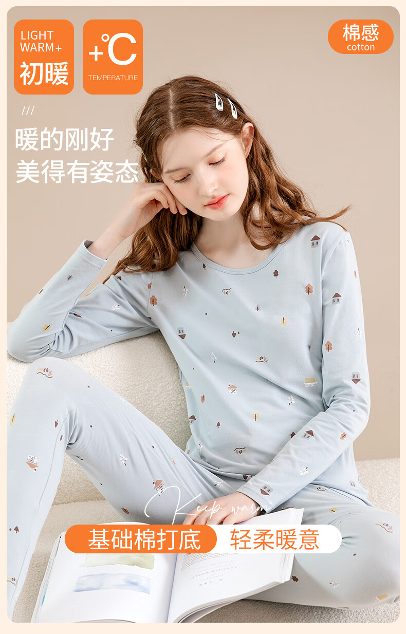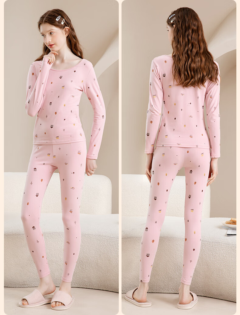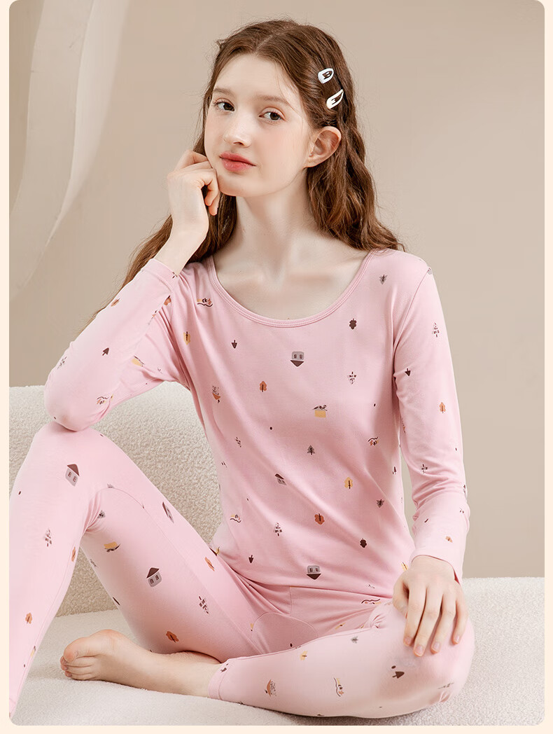 芬腾秋衣秋裤女秋冬新款打底修身中高学生少女保暖内衣套装
