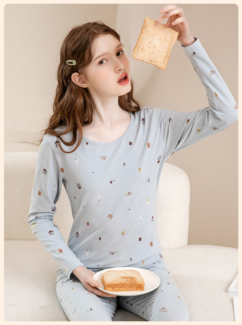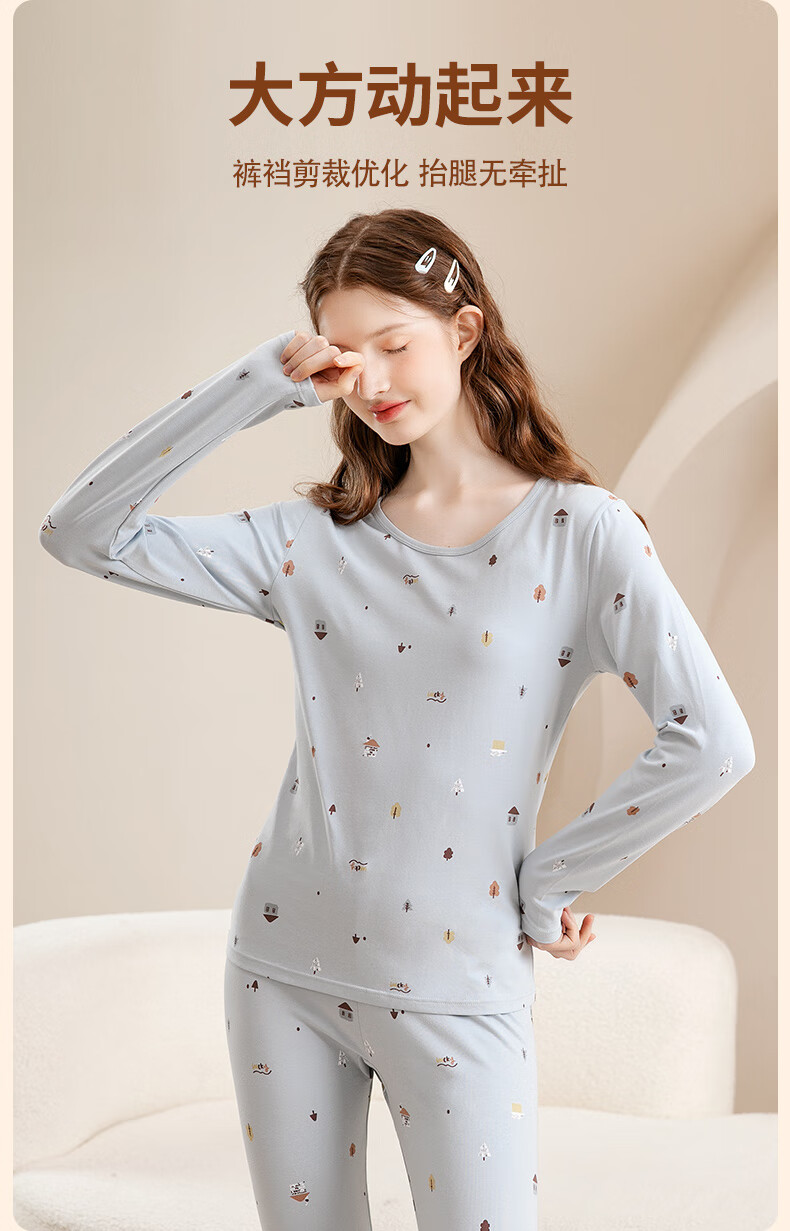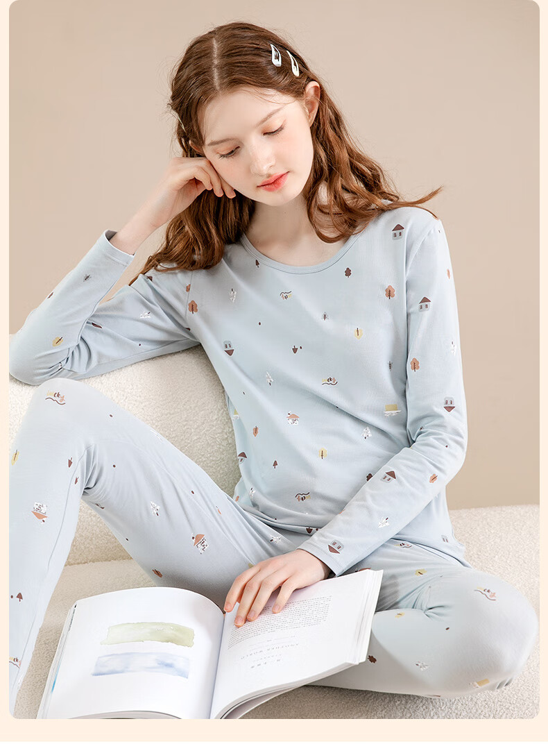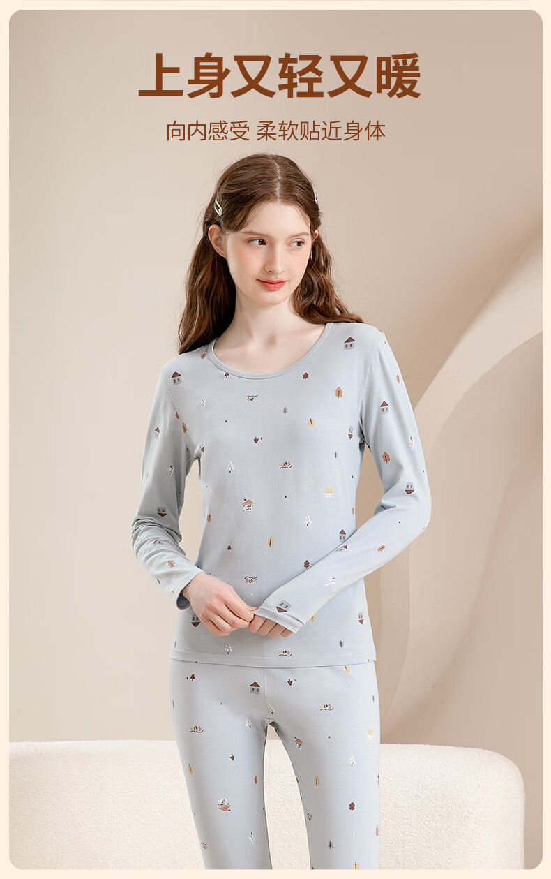 芬腾秋衣秋裤女秋冬新款打底修身中高学生少女保暖内衣套装