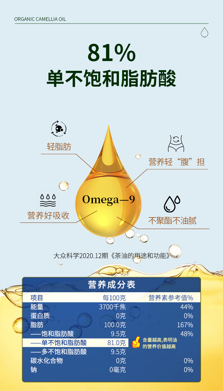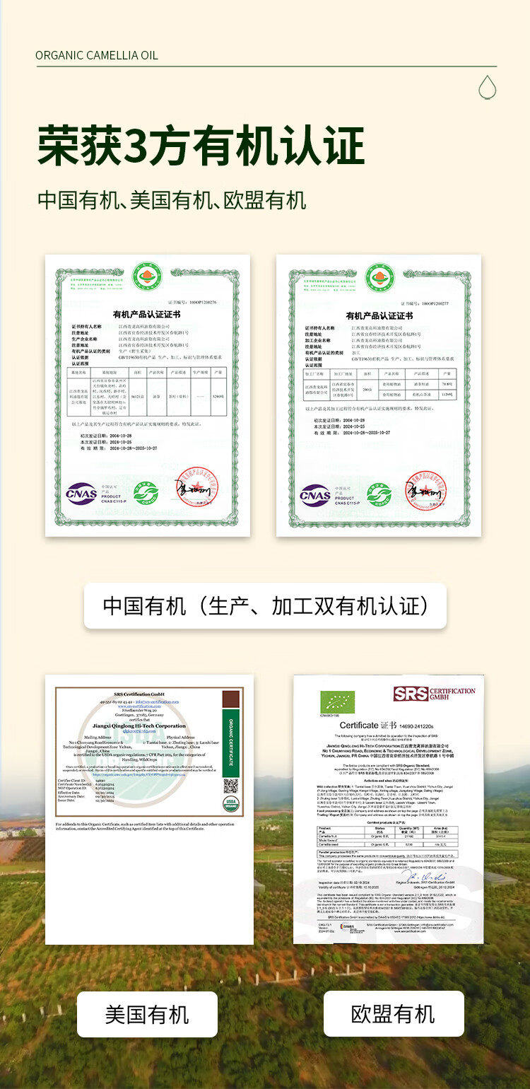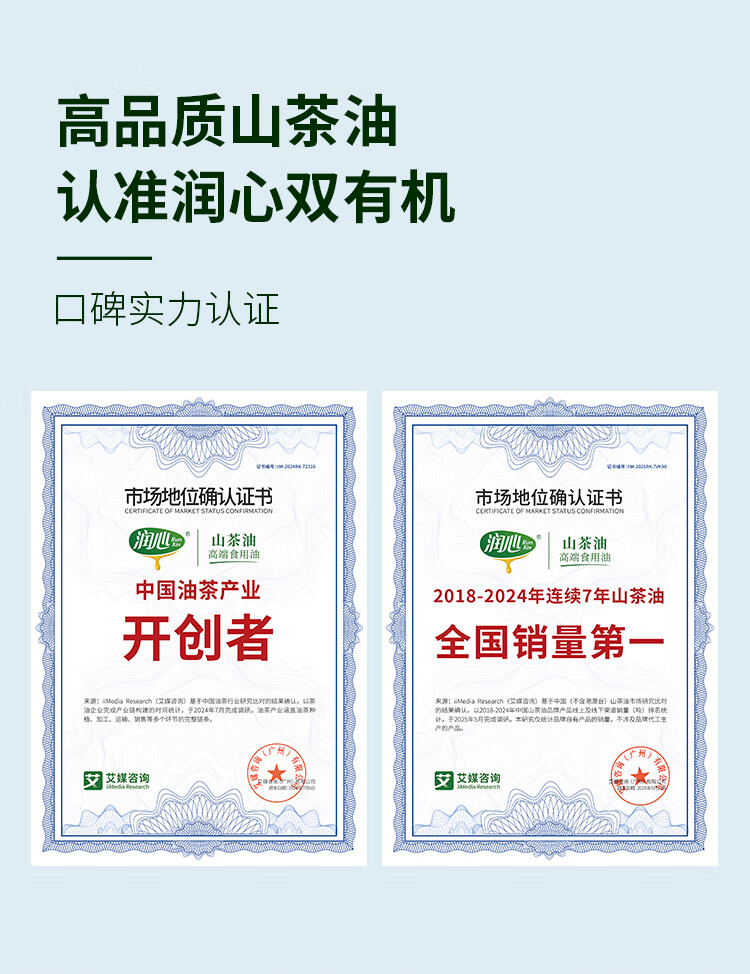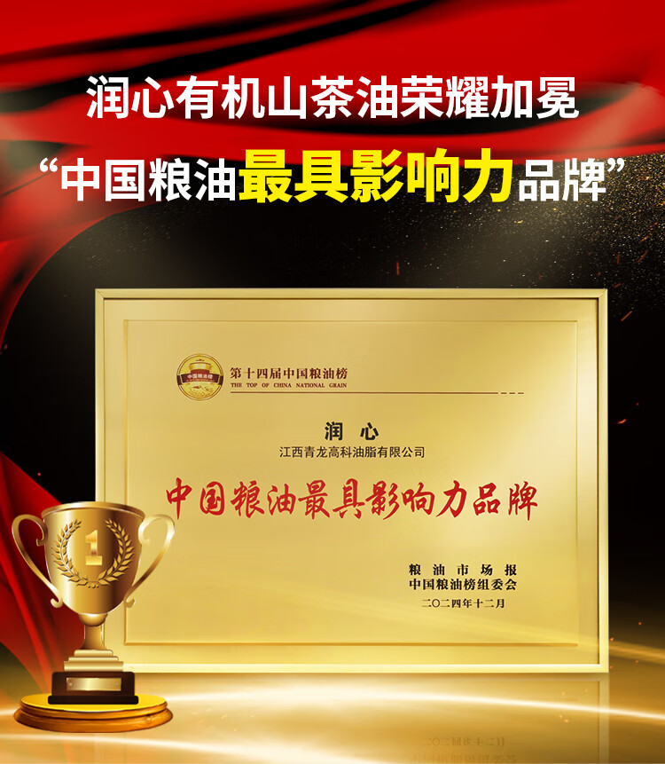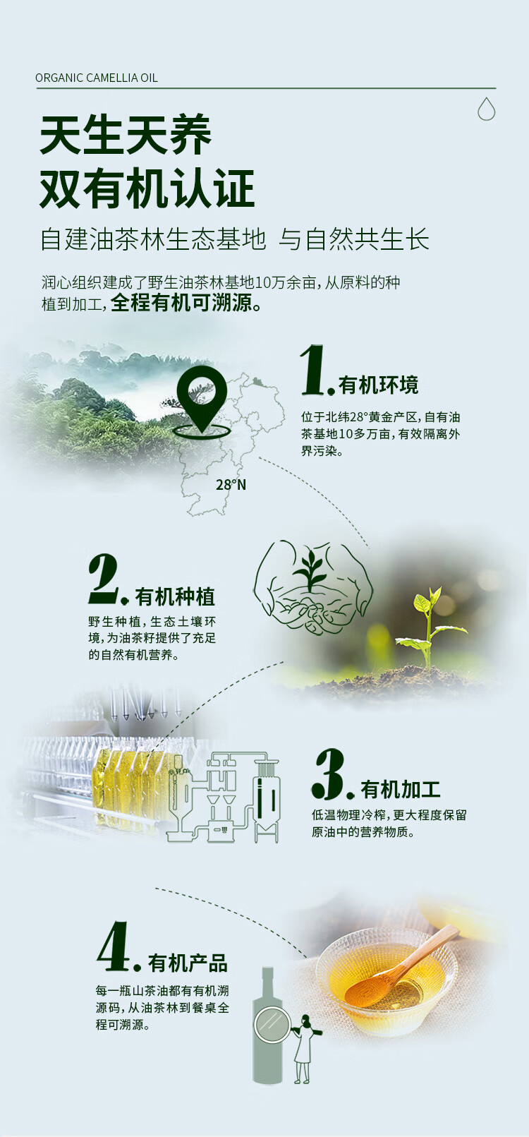 润心【保真山茶油】低温冷榨 一级有机食用油*1.25L