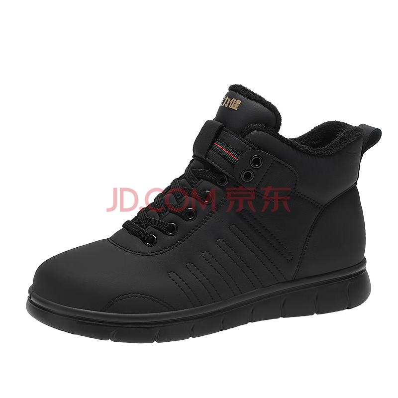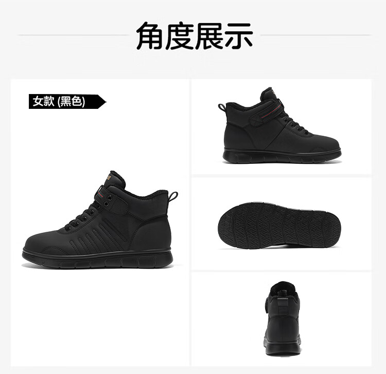 足力健老人鞋冬季新款加绒女鞋防寒皮面棉鞋雪地靴保暖鞋 6315K黑色40