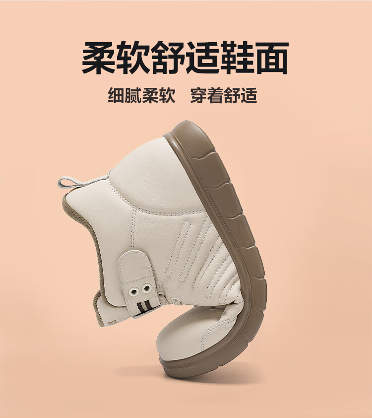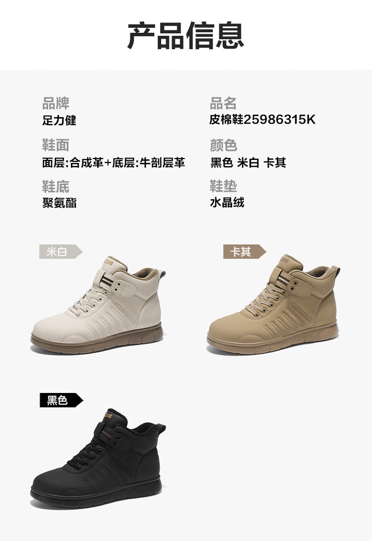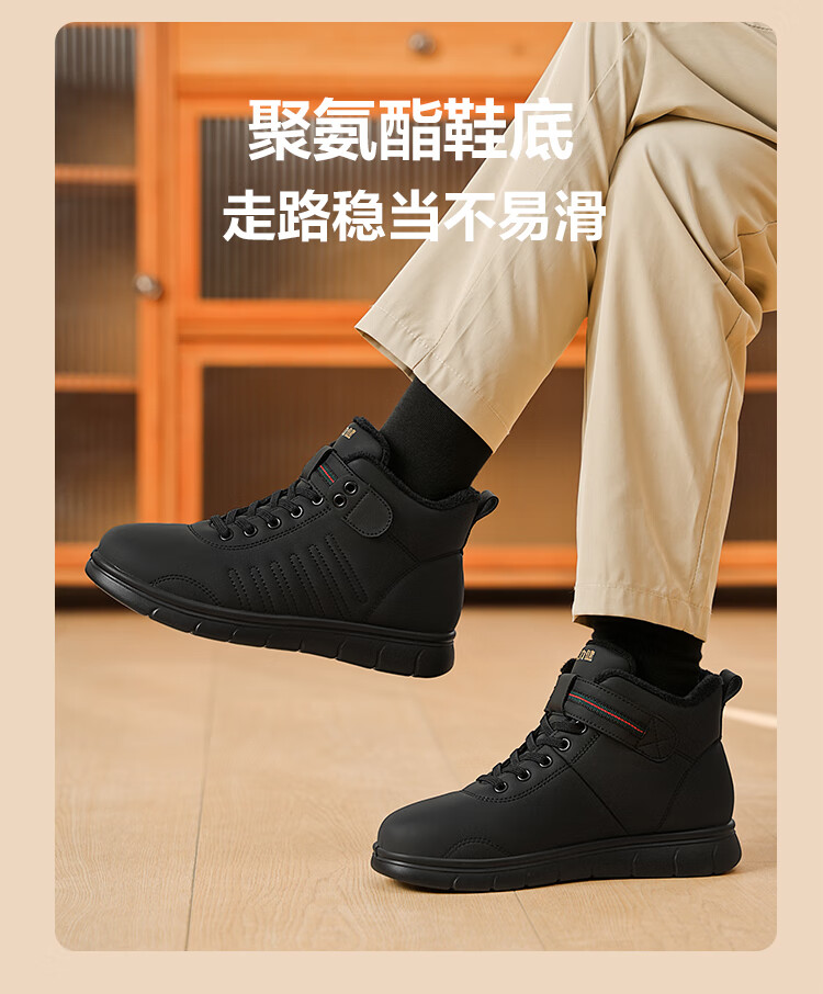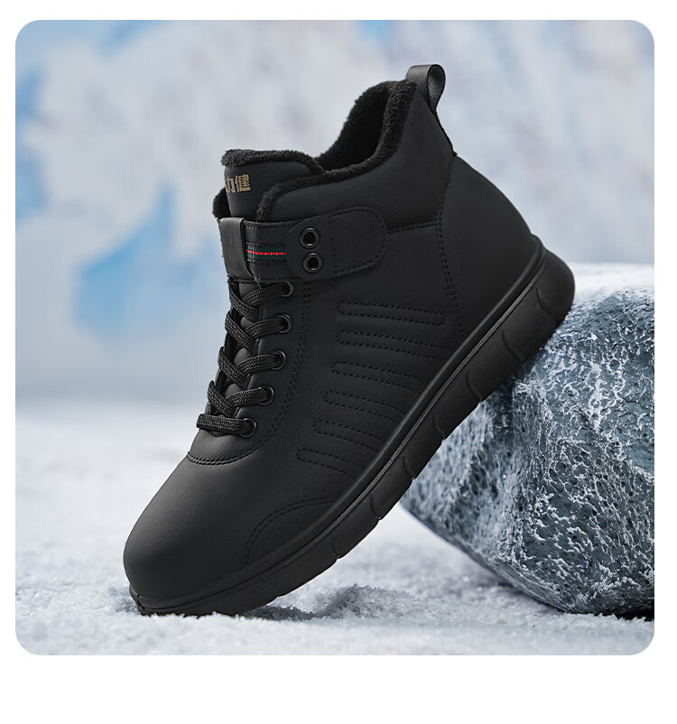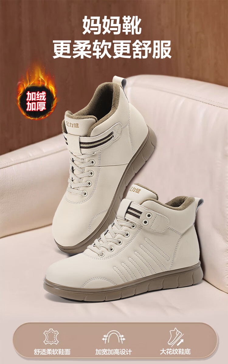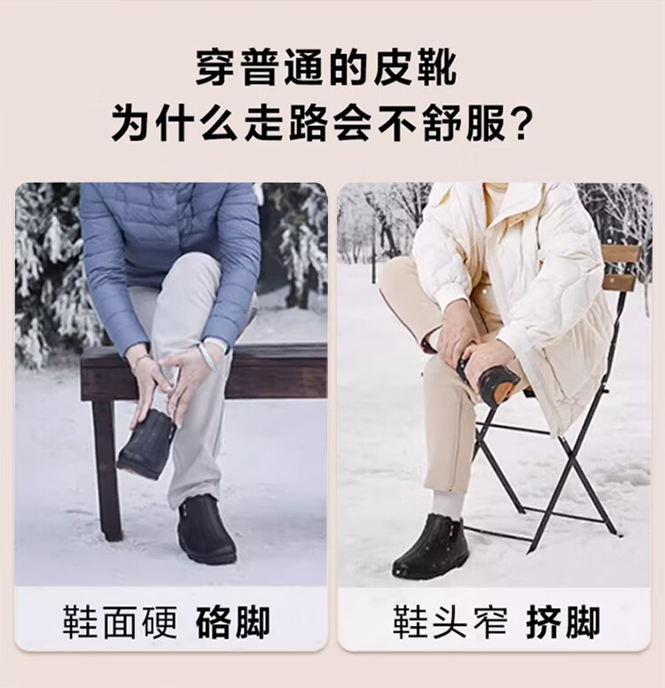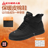 足力健老人鞋冬季新款加绒女鞋防寒皮面棉鞋雪地靴保暖鞋