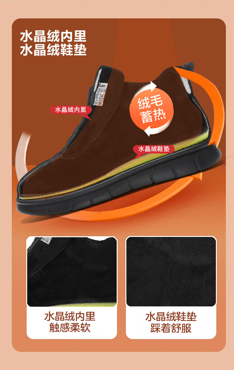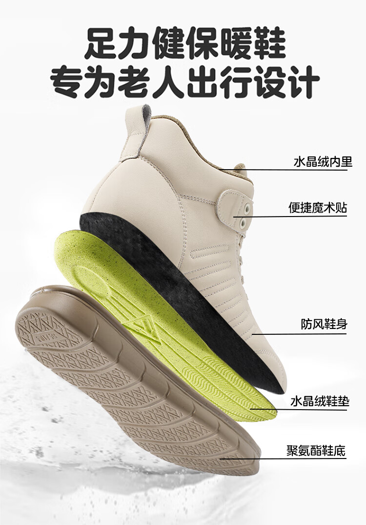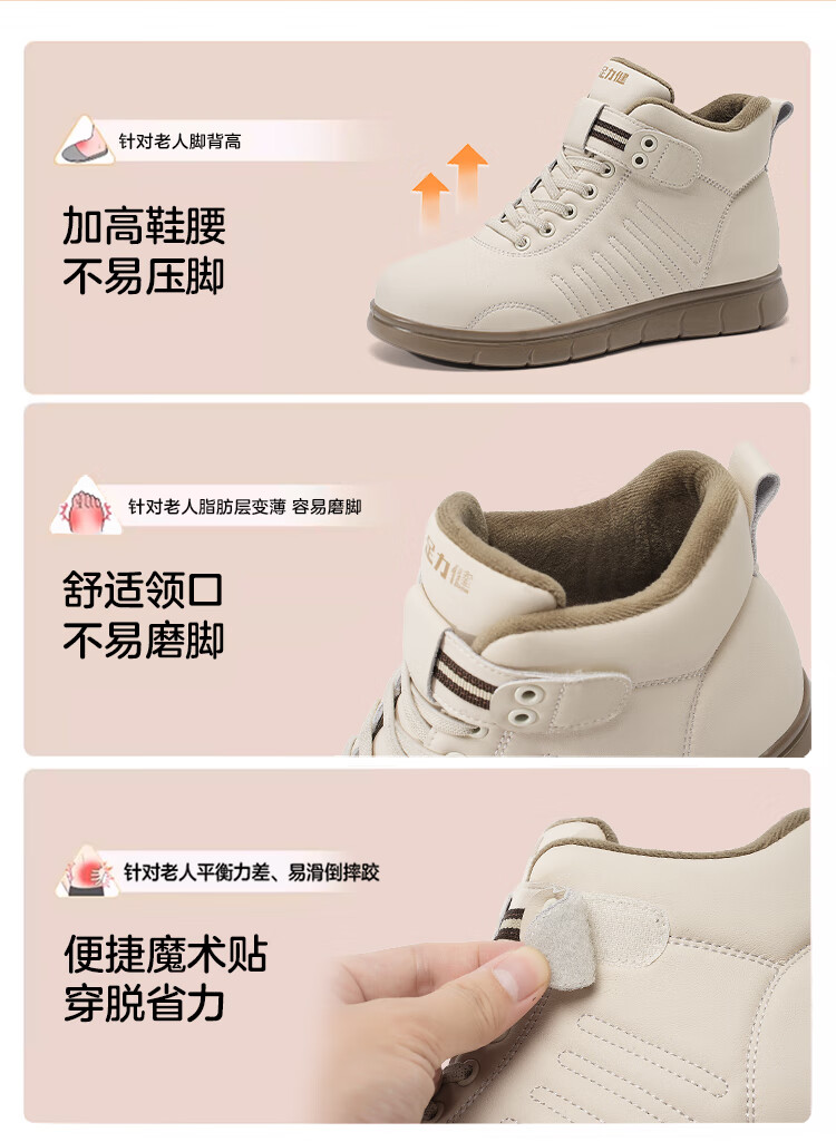 足力健老人鞋冬季加绒抗寒大棉鞋女款保暖雪地靴女士靴子