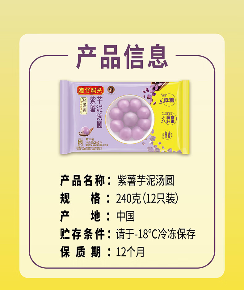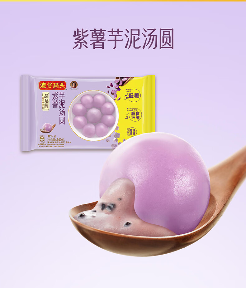 湾仔码头紫薯芋泥轻汤圆240g12只速冻元宵早餐食品速食半成品甜品夜宵会员