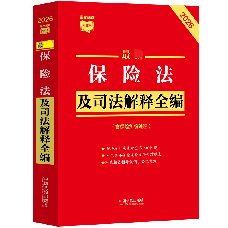 【条文速查小红书】最新保险法及司法解释全编(含保险纠纷处理)(2026年版)一书立足读者的法律需求,全面收录核心法律、相关司法解释、配套法规标准文本;对核心法律的每一个条文附加“条文主旨”,指引读者迅速找到想要查找的条文;针对修法过程中引起的配套规定中援引的条文序号的变迁调整导致读者在学习时难以对应正确条文的问题,设置条文序号变动提示,不用查证,一秒定位最新条文序号;附录历年条文序号对照表或新旧内容对照表,方便读者查阅学习;附录精选指导案例和典型案例,以案释法。