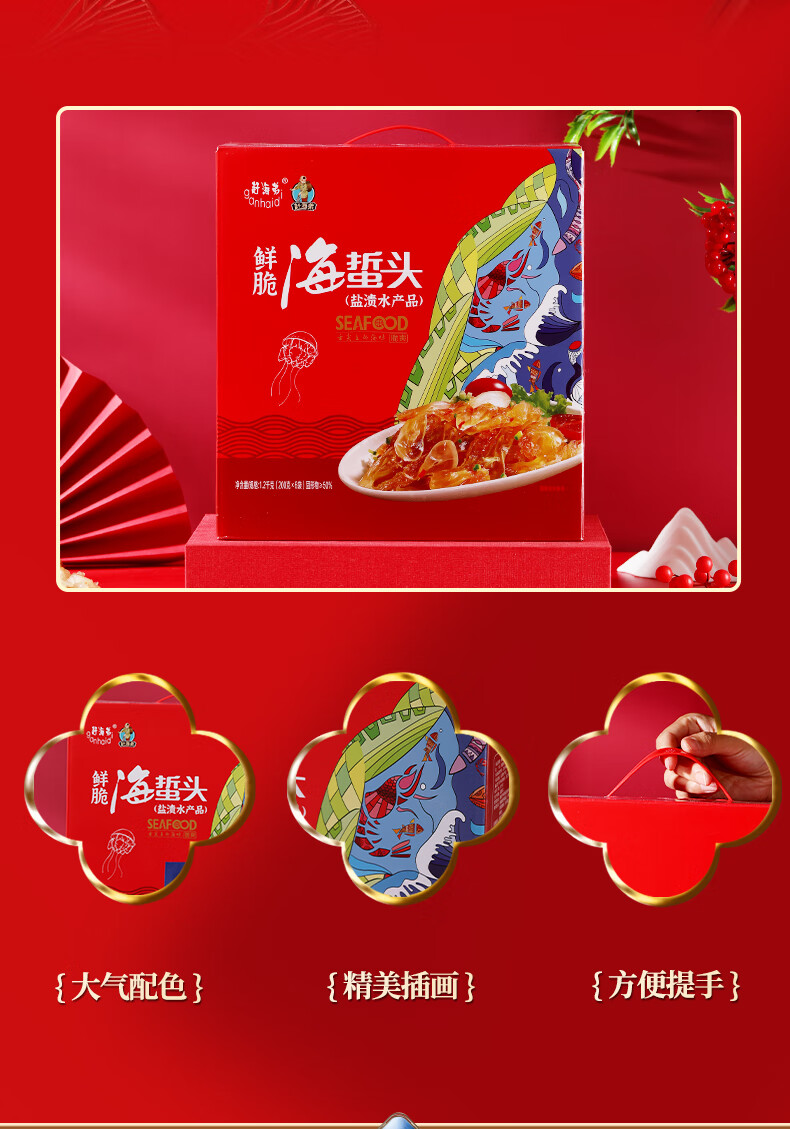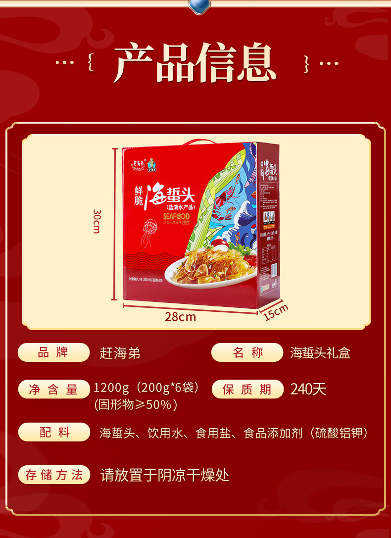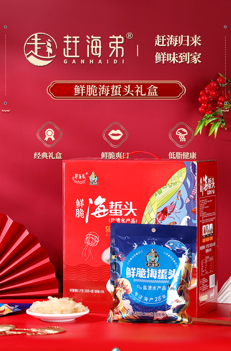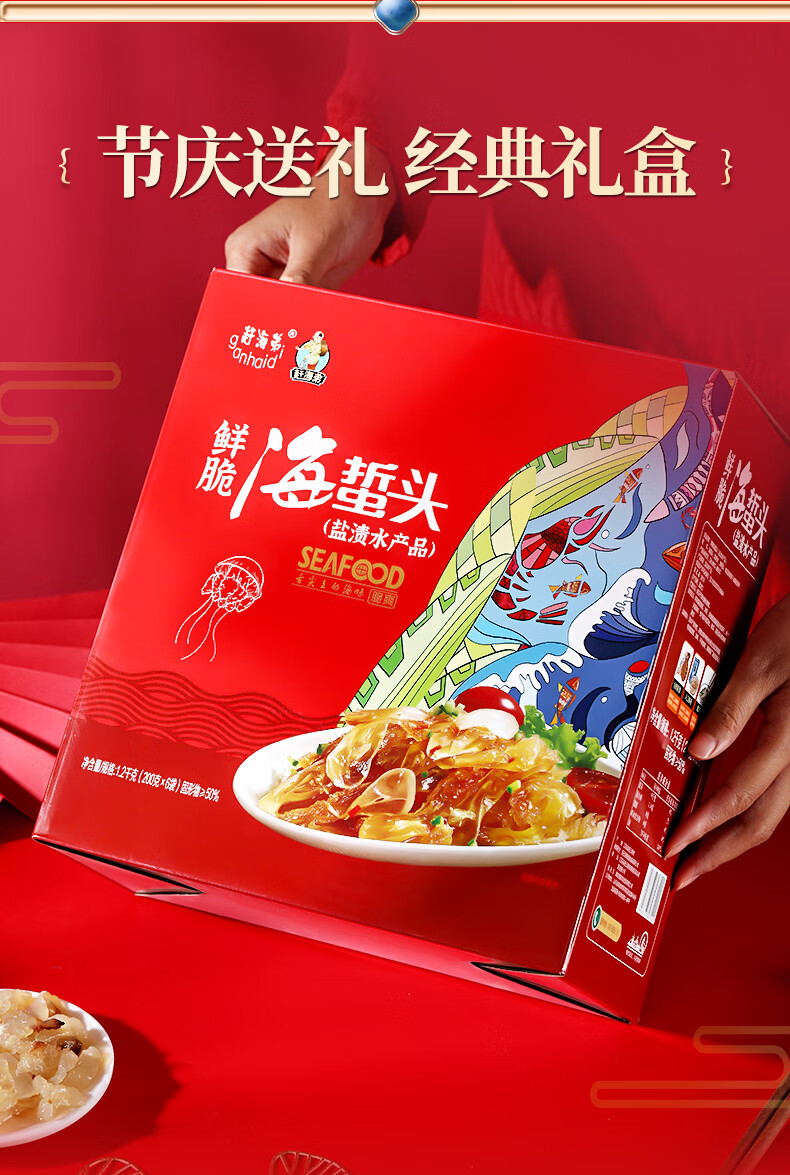 赶海弟 鲜脆海蜇头礼盒1200g 海蜇皮丝 即食凉拌菜 海鲜干货 节庆礼品盒