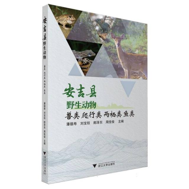 本书为“美丽浙江”系列丛书之一。本书根据最新安吉县域本底资源调查以及最新的动物分类研究成果,全面记录了安吉县兽类67种(含种下分类群), 两栖27种(含种下分类群), 爬行类48种(含种下分类群),鱼类74种(含种下分类群)。在编写时,按最新的分类系统进行归类,每种动物介绍其中文名、拉丁学名、简单形态描述、生境、适生范围等,并配彩色照片数幅。全书内容丰富、新颖,图文并茂,对兽类、两栖类、爬行类、鱼类资源调查具有实践意义。