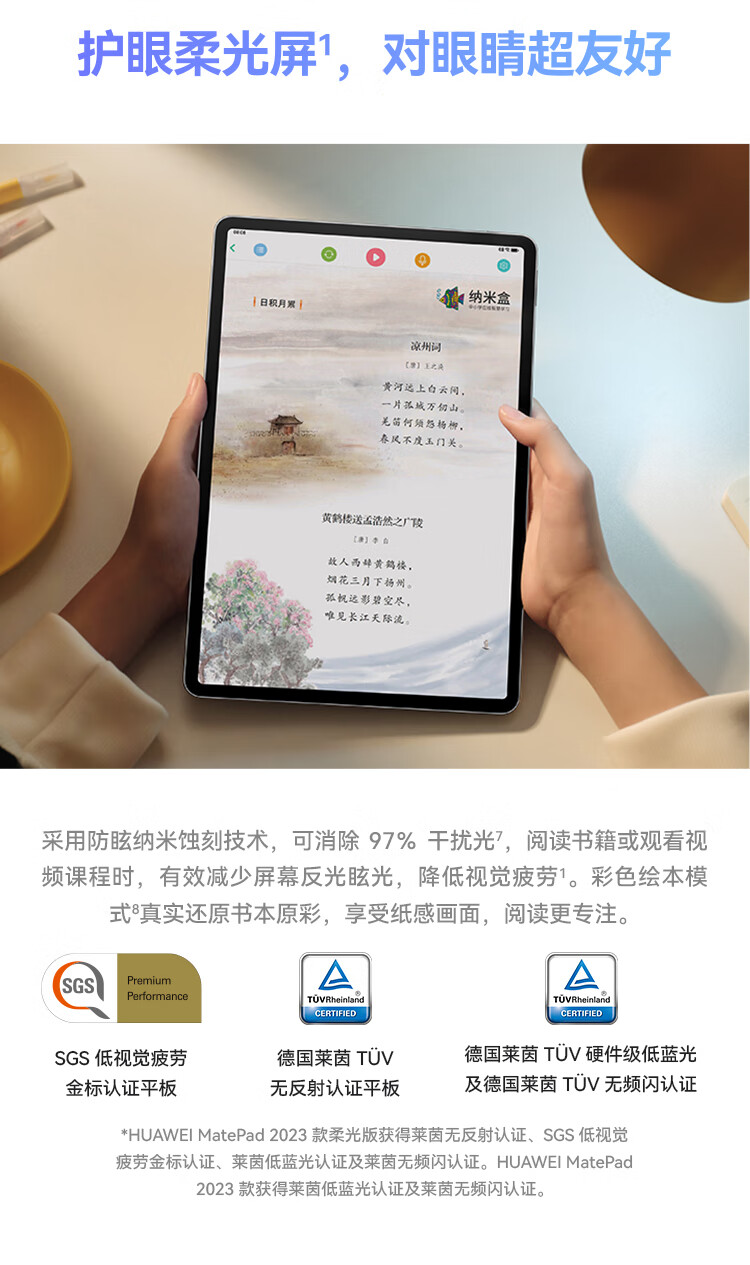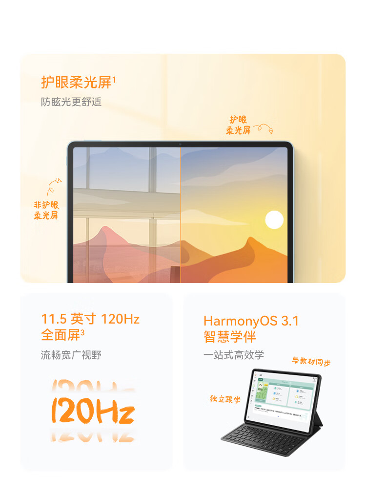 HUAWEI MatePad 标准款柔光版华为平板电脑11.5英寸120Hz护眼柔光全面屏学生学习娱乐平板8+128GB 海岛蓝