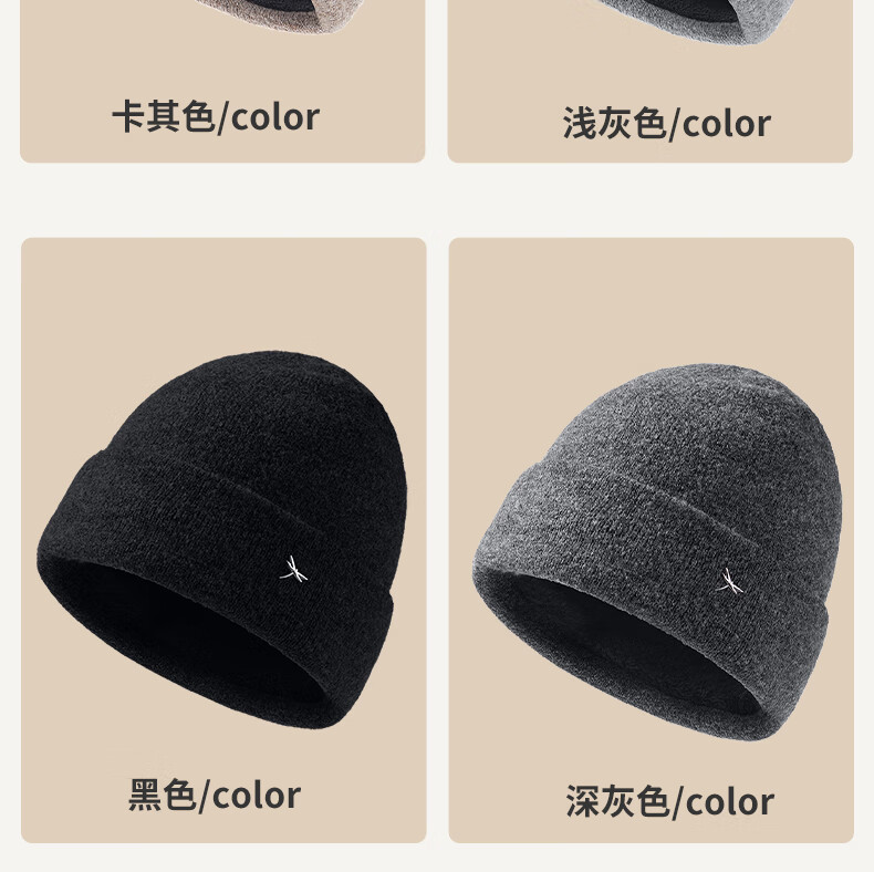 红蜻蜓帽子男冬季防寒保暖毛线帽东北冬天防风冷帽加绒防冻针织帽棉帽女
