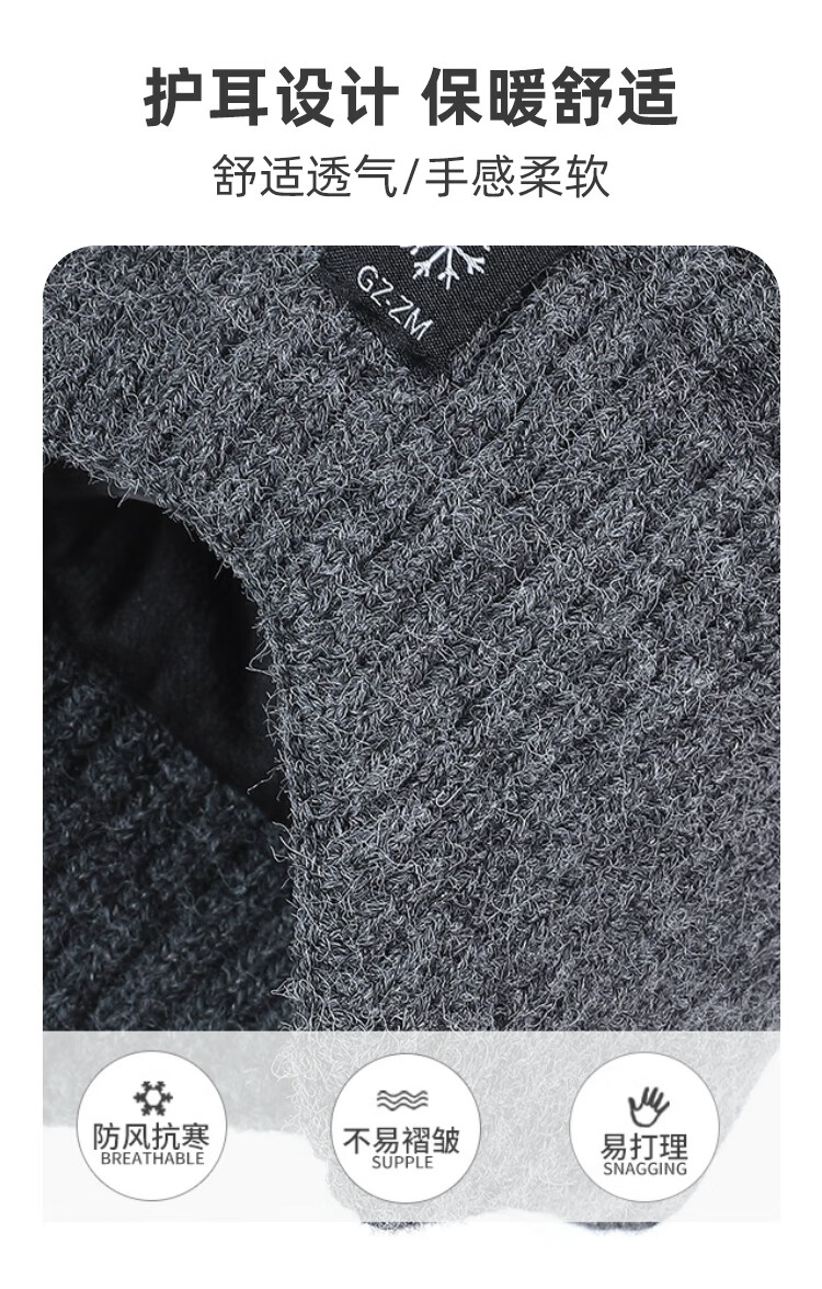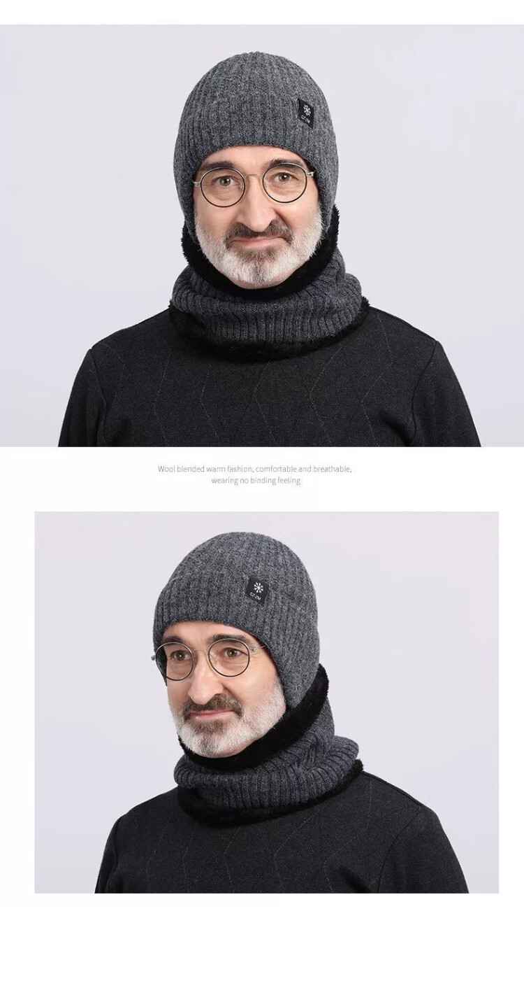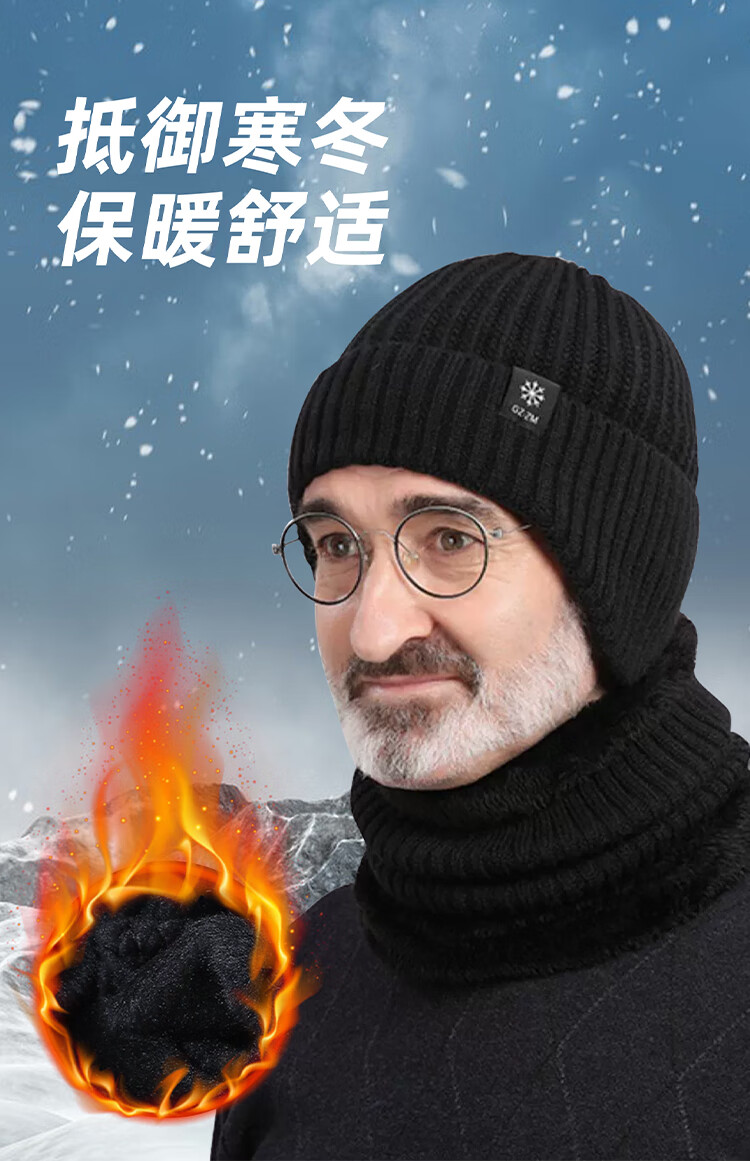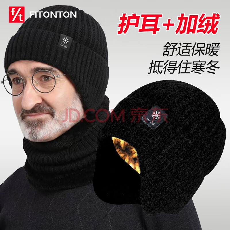FitonTon帽子男冬毛线帽中老年人加绒保暖护耳爸爸针织帽男防寒帽男士棉帽