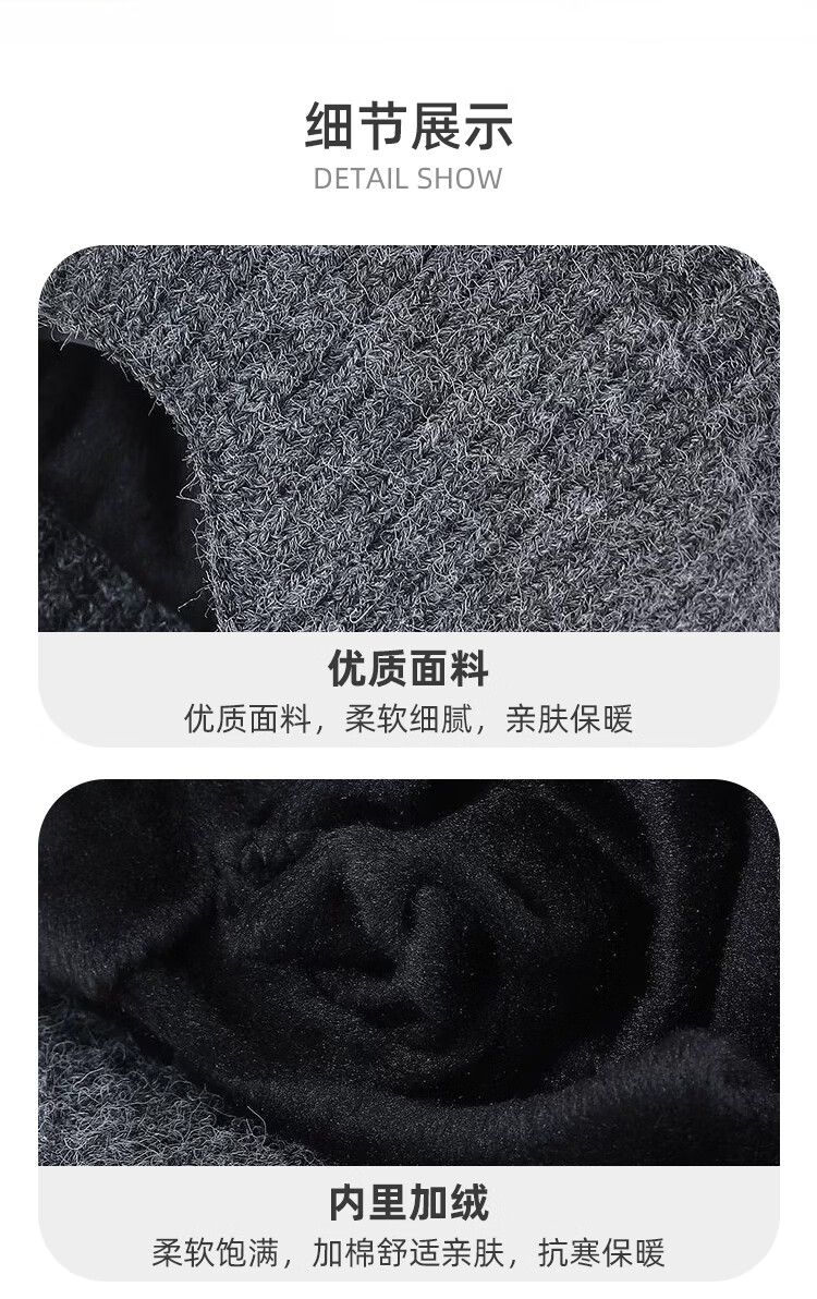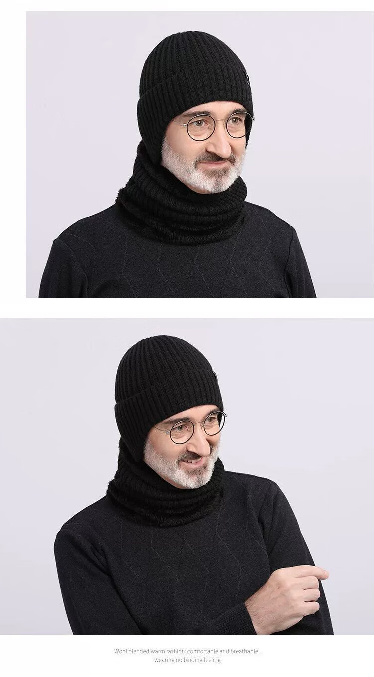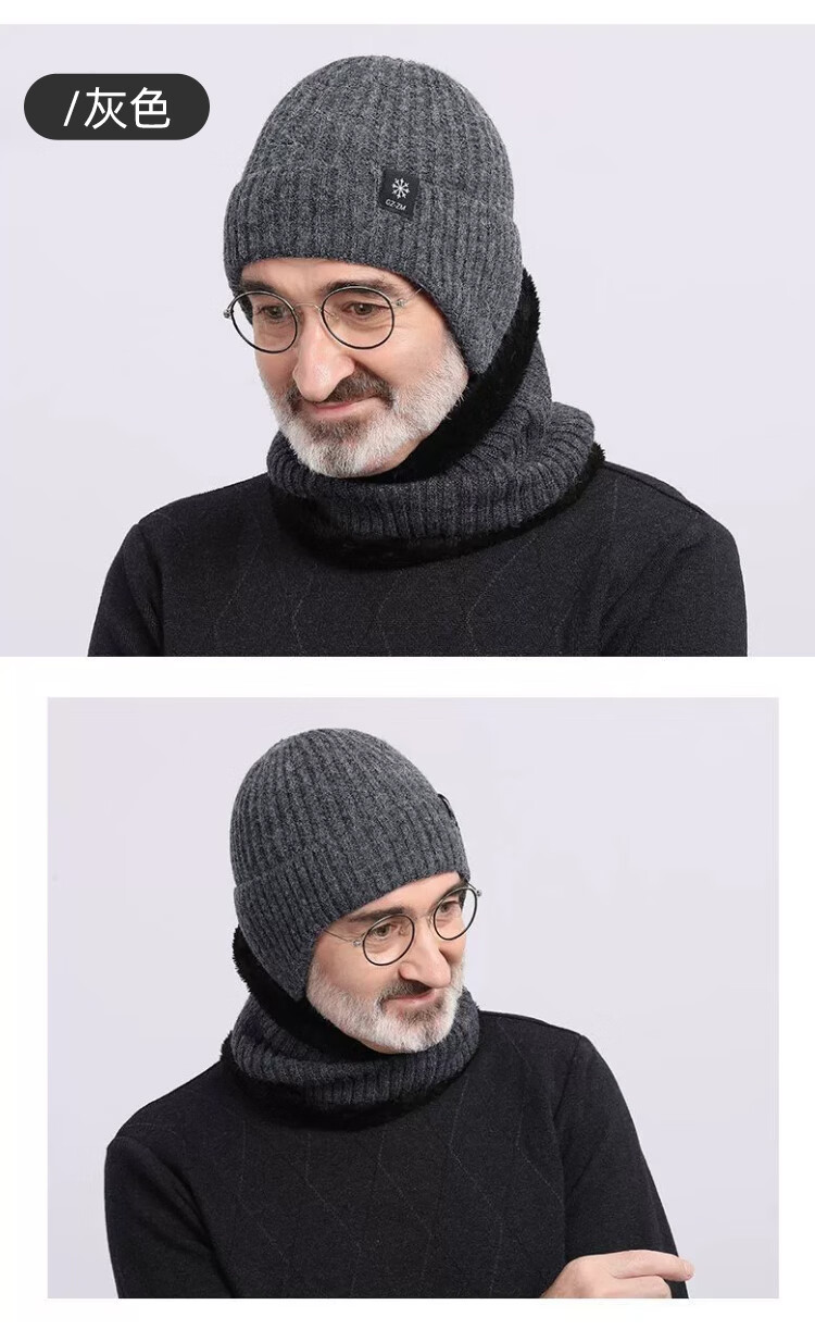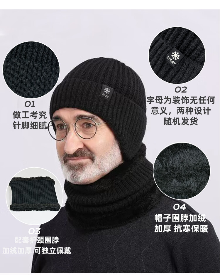 FitonTon帽子男冬毛线帽中老年人加绒保暖护耳爸爸针织帽男防寒帽男士棉帽