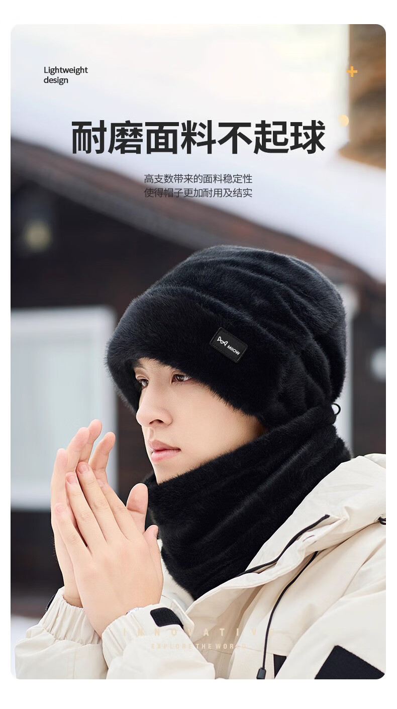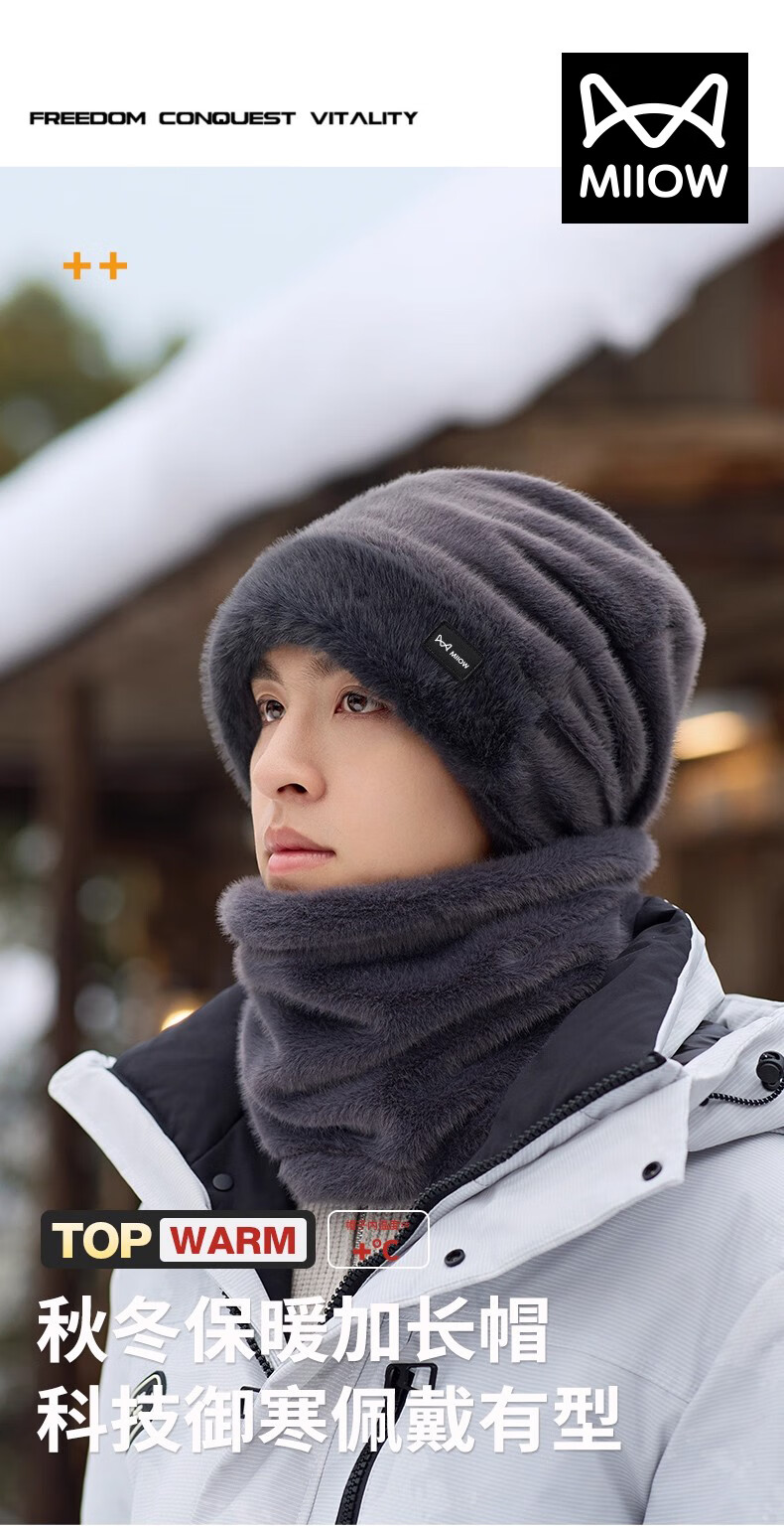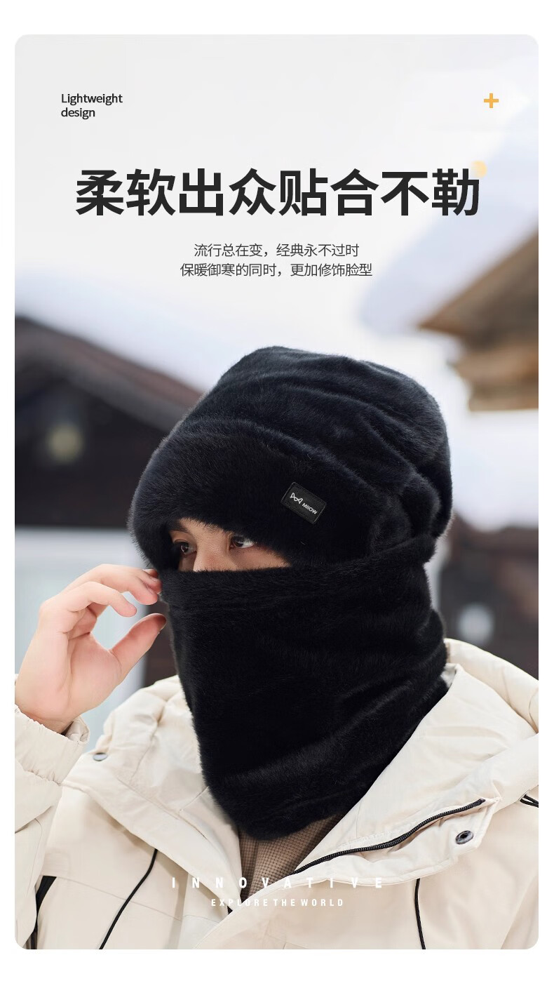 猫人帽子冬季男保暖加绒加厚防寒护耳护颈围脖男冬季帽子防风帽 灰色
