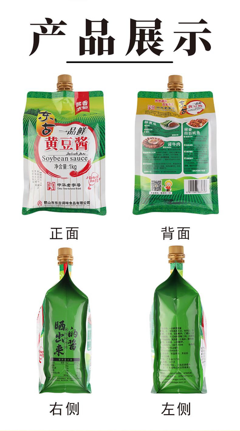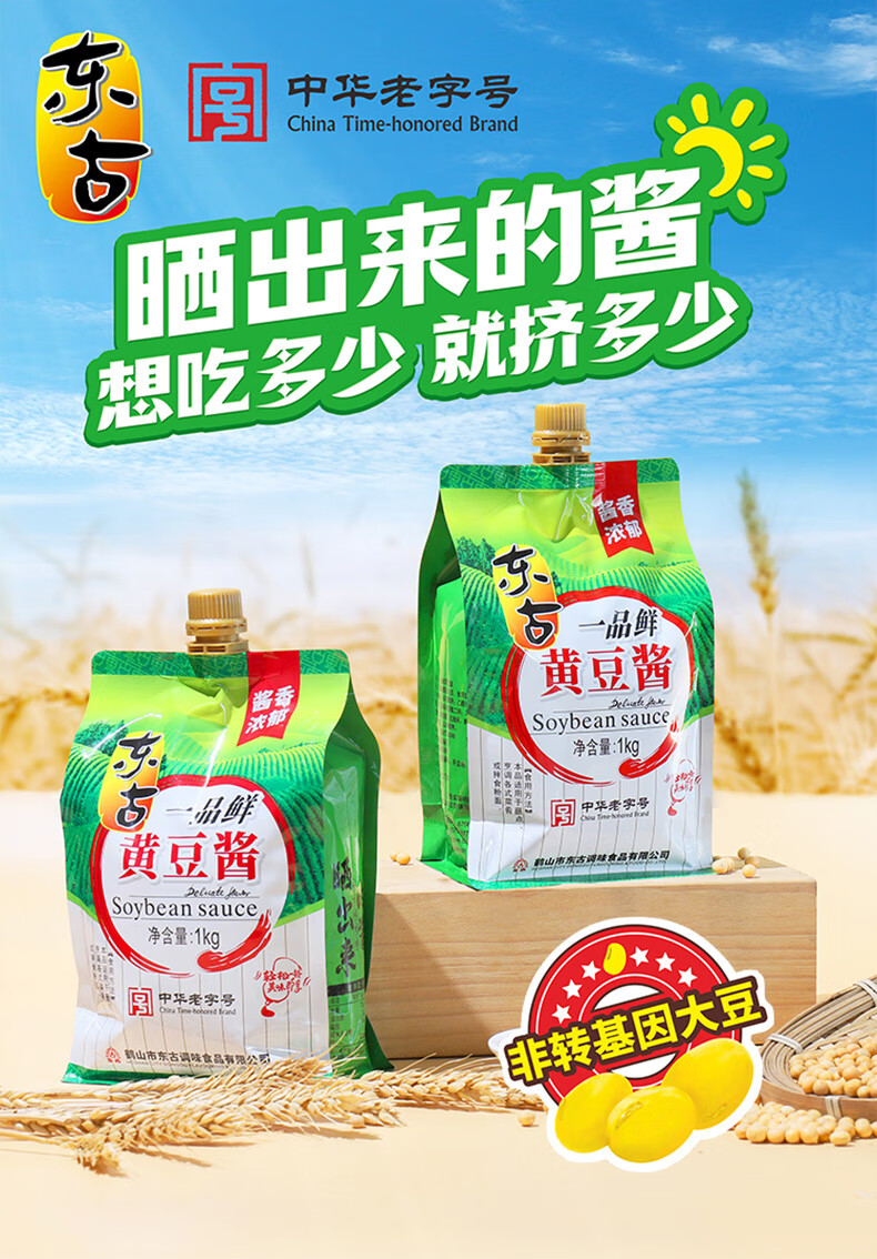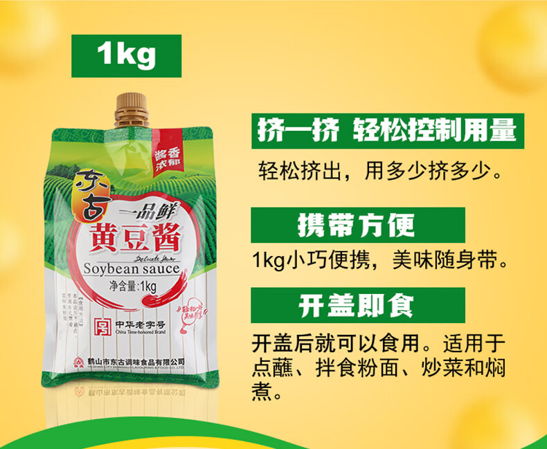 东古 一品鲜黄豆酱1kg挤挤装 豆瓣酱东北大豆酱即食面酱卷饼酱
