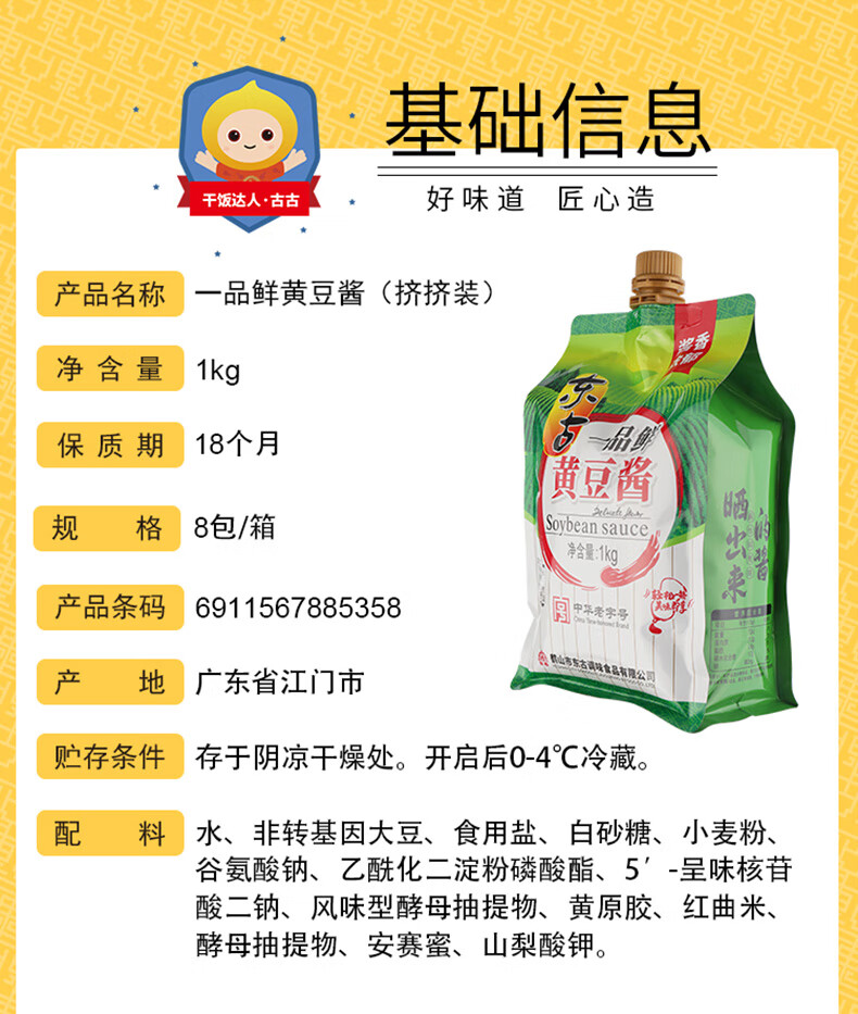 一品鲜黄豆酱挤挤装1kg