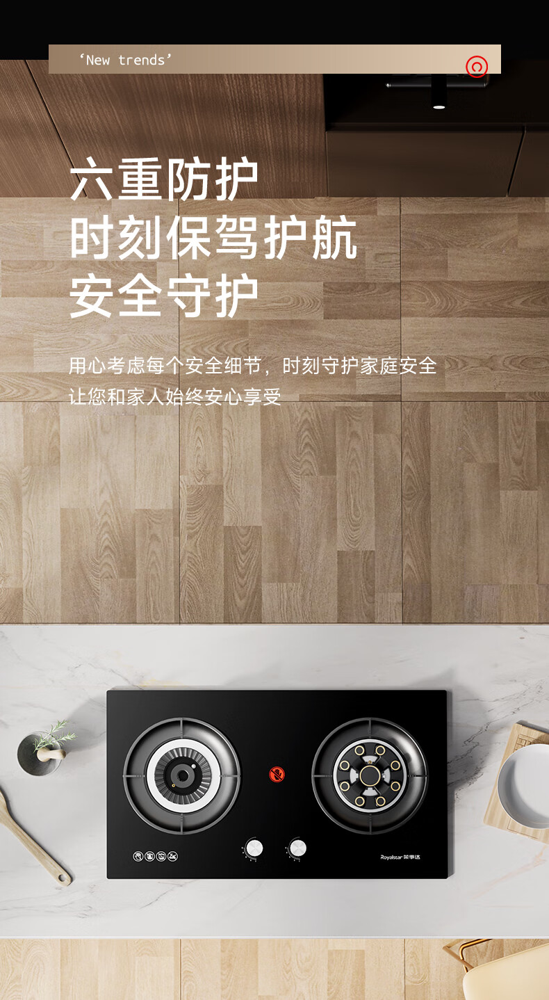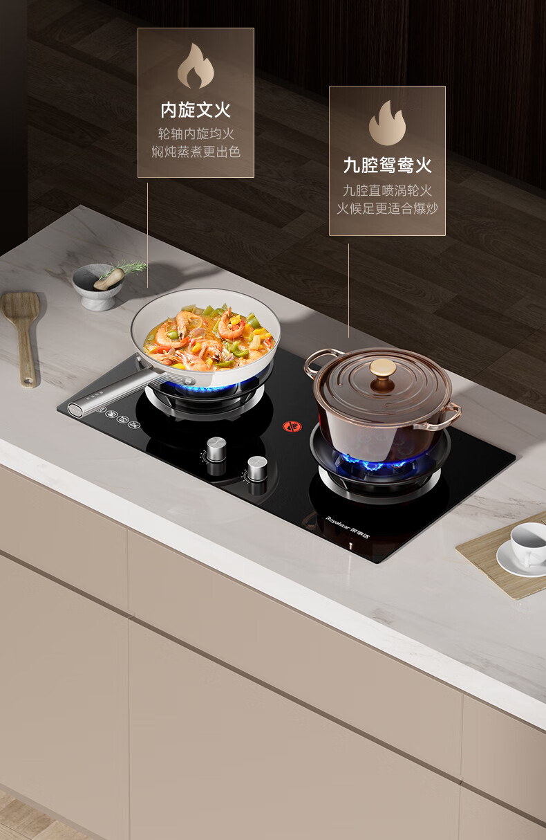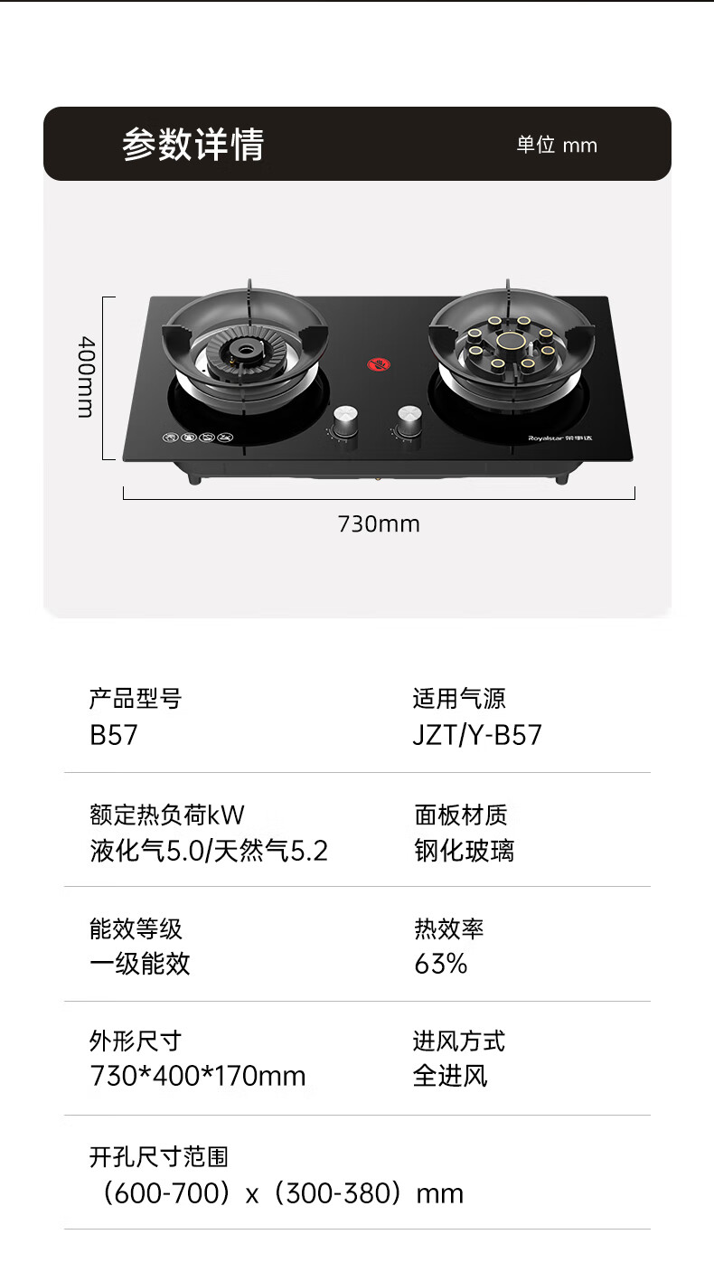 荣事达(Royalstar)家用燃气灶天然气灶双灶嵌入式一级能效 5.2kW九腔鸳鸯超大火力猛火灶双灶嵌两用灶具JZT-B57