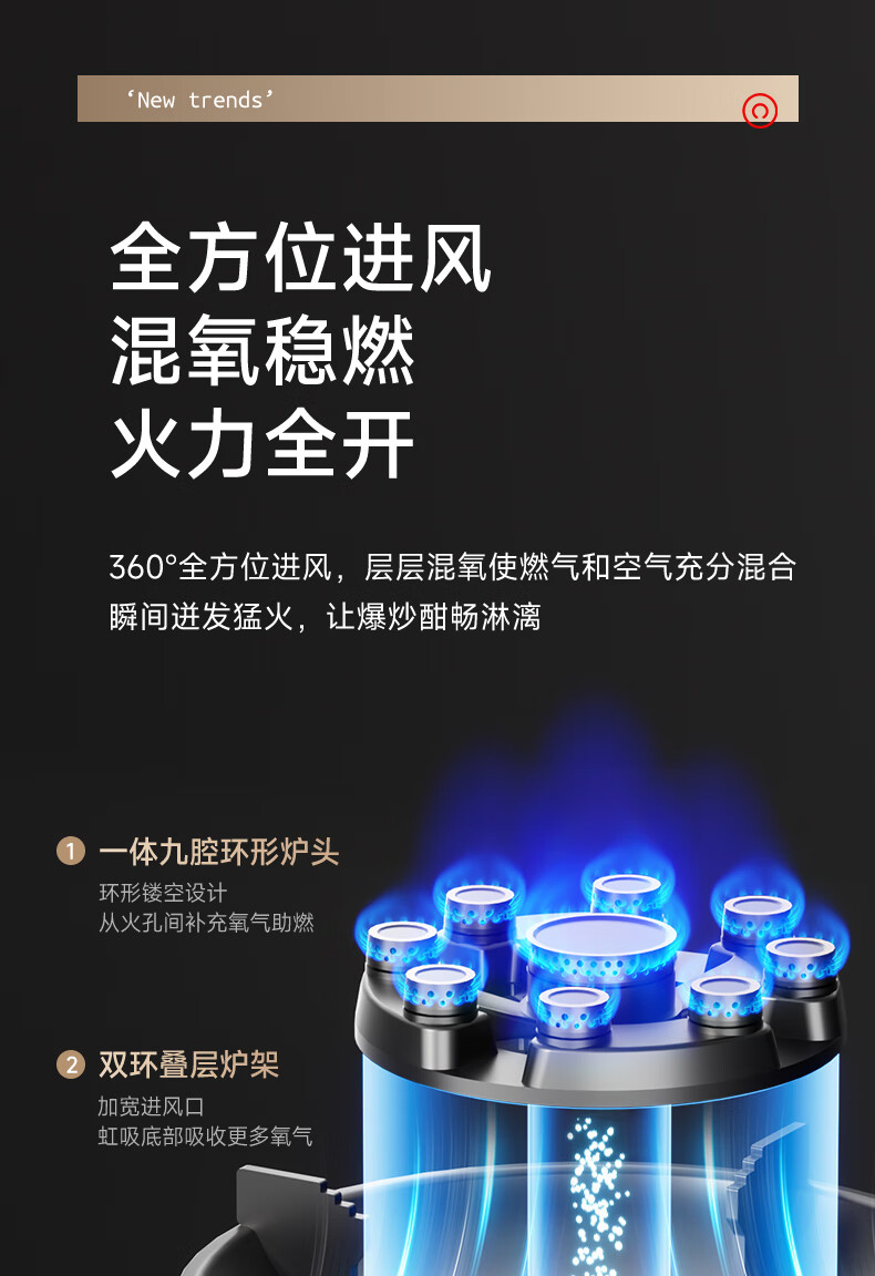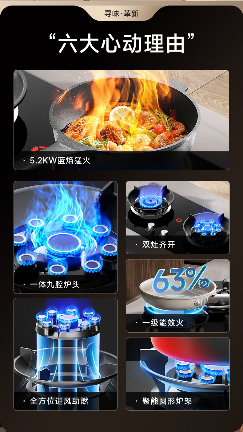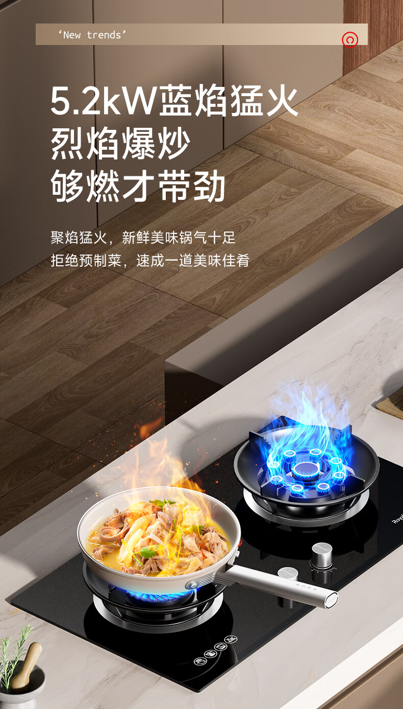 荣事达(Royalstar)家用燃气灶天然气灶双灶嵌入式一级能效 5.2kW九腔鸳鸯超大火力猛火灶双灶嵌两用灶具JZT-B57