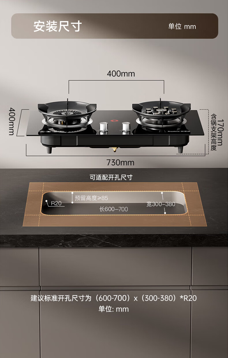 荣事达(Royalstar)家用燃气灶天然气灶双灶嵌入式一级